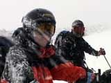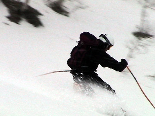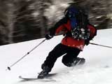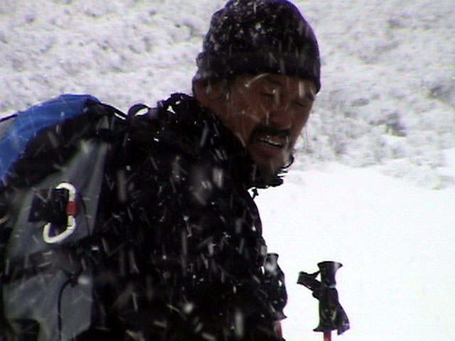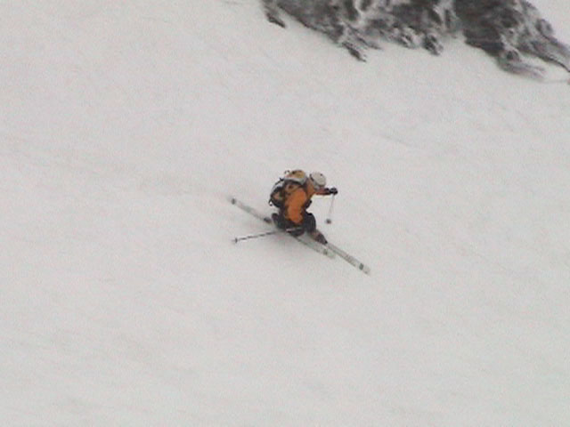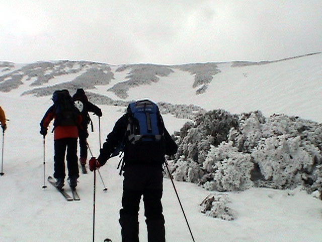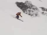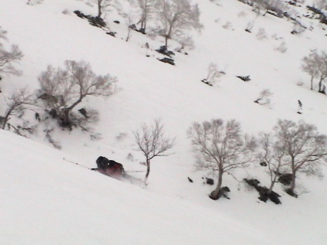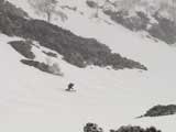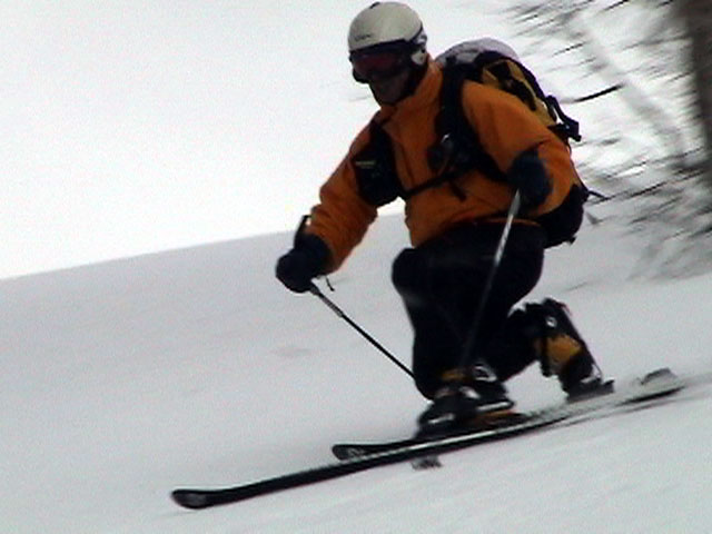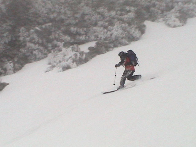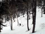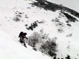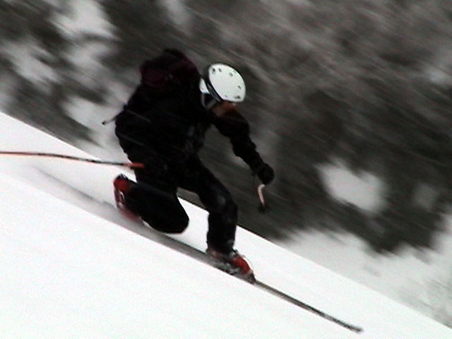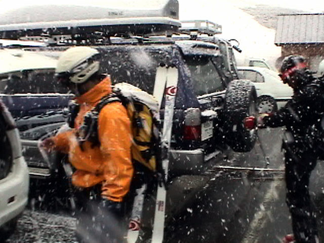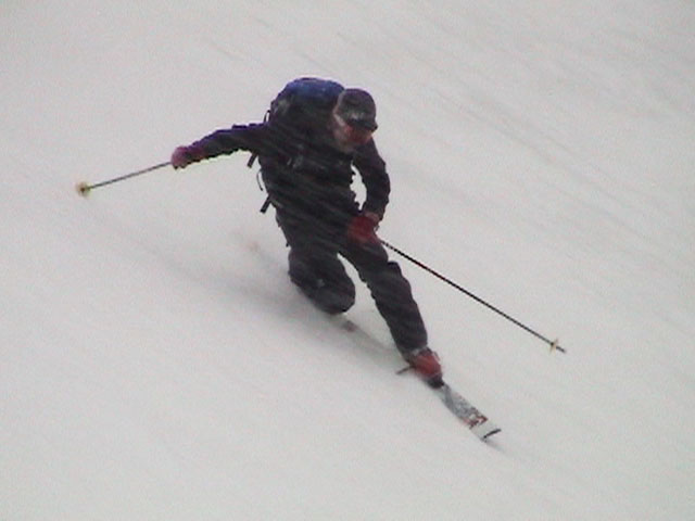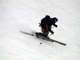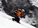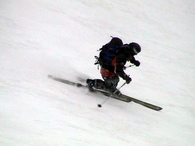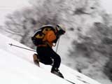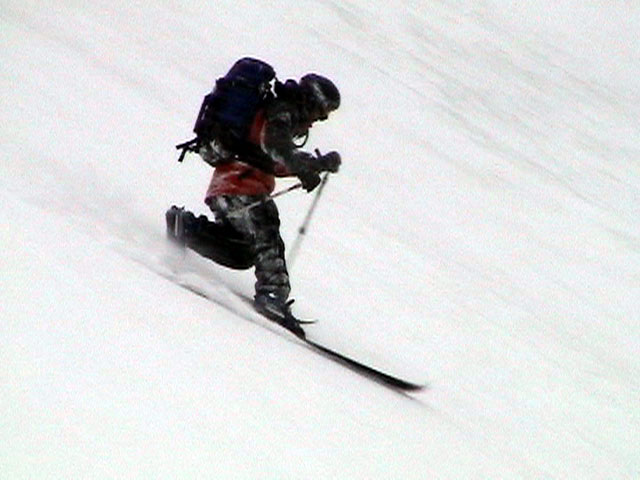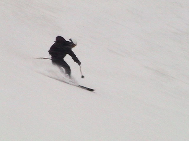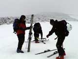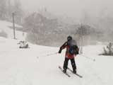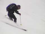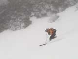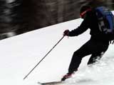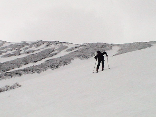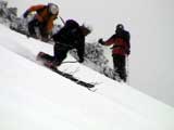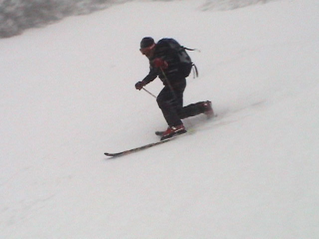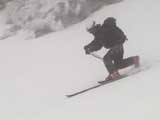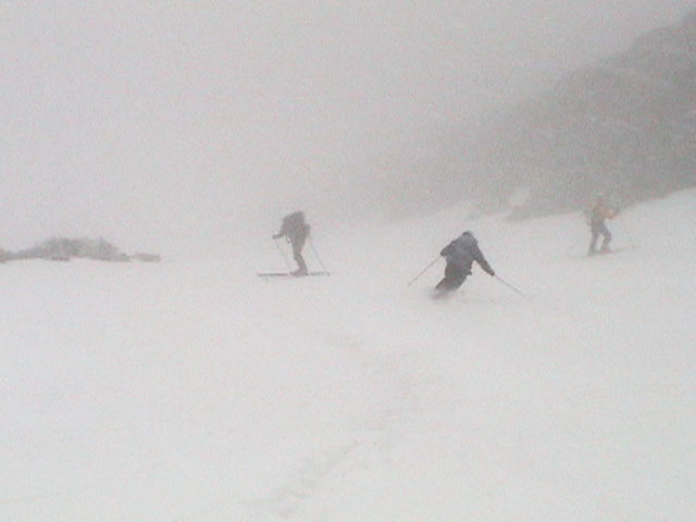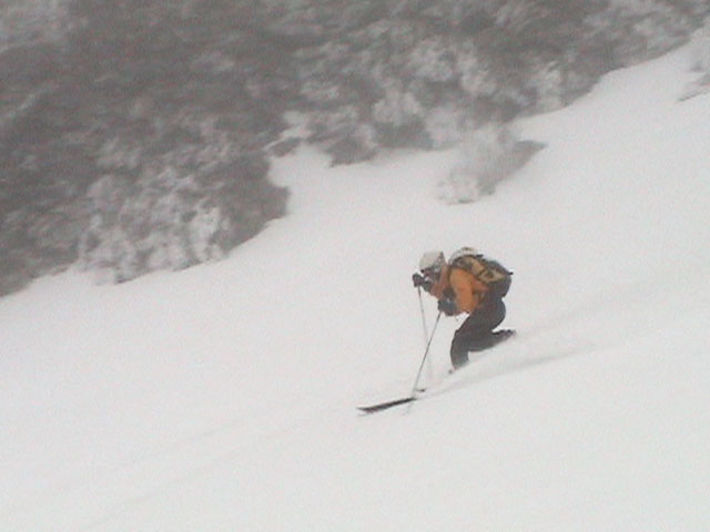 | 2003年5月10日(土) 三段山スキーツアー(真冬に逆戻り、吹雪のツアー) 今日は三峰山の予定だったが、ガリガリの雪質にびびって目的地を三段山とした。 白銀荘付近はガランとしていた。我々の他に登山者の姿は見えない(島田さんが入っていたようだけど、出会えなかった)。 登りだしから、ストックすらロクに刺さらない固い雪に驚かされた。 スプーンカットされた完全なアイスバーン。これは手強い! 二段目の登りで、すでにスリップして滑落気味。これじゃピークへはアイゼンが無いと登れない。こんな手強い三段山は初めてだ。 二段目の上は、かなりハイマツが露出しており、東の谷ギリギリの雪を辿った。これから行く方は雪庇に注意したほうが良いだろう。 三段目付近ではほとんどシールが効かず、エッジを駆使して登る羽目になる。 そのうち雪がちらつき始め・・・なんと吹雪へ。気温は-5度へ急降下。視界もホワイトアウト程度にまで低下。こうなると俄然盛り上がってくる(^_^)。 この条件下だと厳冬期装備でないと遭難しそうだ。思いがけない冬の再来に僕らは大喜び。 アイゼンを持っていないのでピークはあきらめて、廊下の突き当たり付近から西の谷へトラバースしたが、途中、ハイマツがかなり障害になった。 やっとたどり着いた西の谷も、まるでボブスレーコースのようにカチカチ・・かなりのハイスピード滑降or滑落が期待される。 実際滑ってみると、板がスプーンカットに蹴られ、体全体に脳しんとうを起こしそうな振動を感じながらの滑降になった。油断するとエッジが抜けて転倒〜滑落してしまう。 前日から積もった1センチ程度のパウダーが、アイスバーンの表面に載っており、ターンするとスプレーが上がって感動した。この時期にこんな雪に出会えるとは思わなかった。 樹林帯の中も見事に起伏だらけのアイスバーンで、緩い斜面でも十分にスピードが乗り、白銀荘まであっという間の下りだった。 白銀荘周辺でも雪が盛大に降っていて、管理人が夏タイヤで来た温泉客の事を心配していた。 我々が帰るときには、まだ車道には雪は積もっていなかったが、明日の朝には雪が積もっていなくてもアイスバーン状態にはなっているかもしれない。やっぱ、スタッドレスはなかなか脱げないね。 コース:白銀荘〜夏道コース 天候:曇り〜吹雪 気温:0〜-5度 風速:0〜5m 雪質:完全なアイスバーンの上に1センチのパウダー 雪量:山頂までシール登高が可能な程度 メンバー:旦那、スー、toshi、かっちゃん(俺流)、シロクマ 合計5名 コースタイム:白銀荘9:10-11:11:11西の谷(1619m)11:30-12:45白銀荘 |