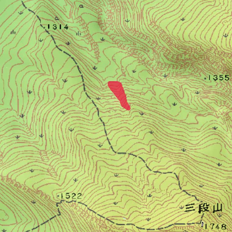 ウインドスラブが流れたものと思われる。急斜面なのであまり滑る人は居ない場所だが十分注意されたい。三段山では東谷でも西の谷でも大規模な雪崩が発生することが分かった。