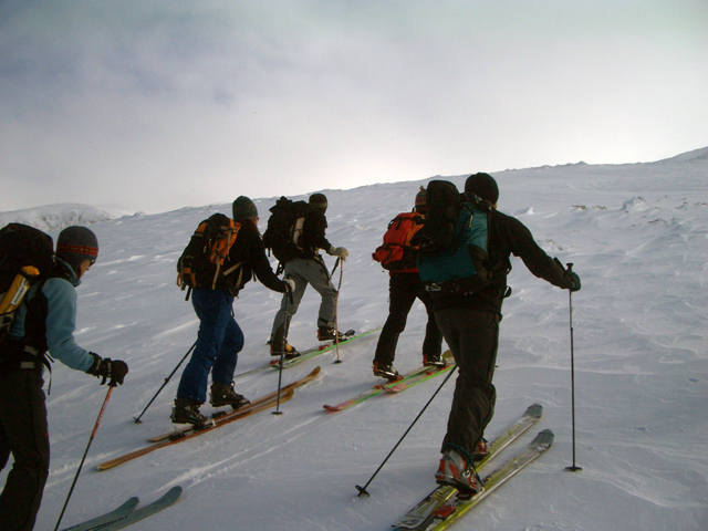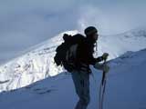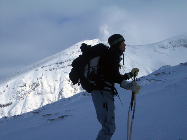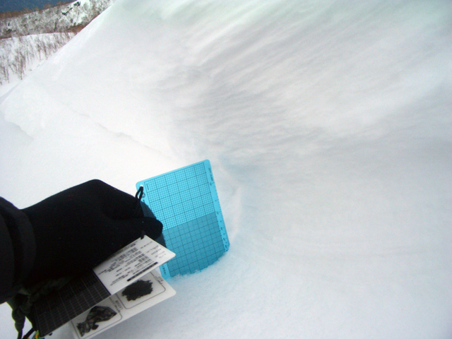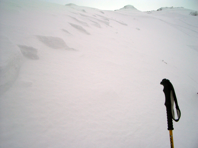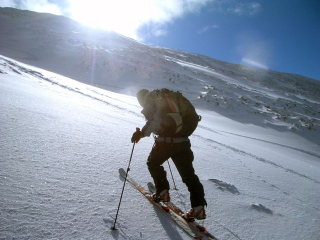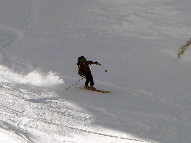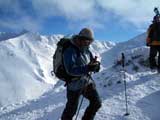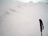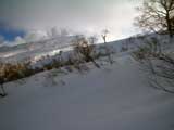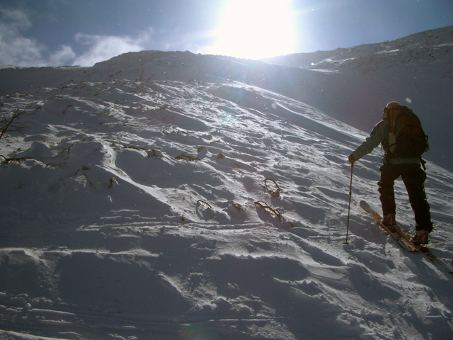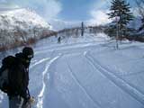 雪は前日の強風で飛ばされていて、ラッセルはまったく無し。滑る時が不安だ・・