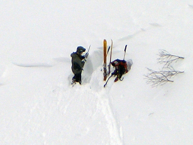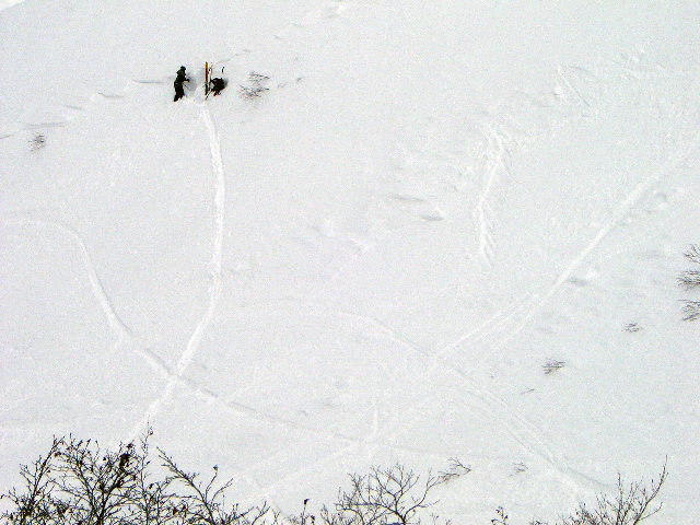 皆が登り返して滑っている間に、旦那は雪崩の観察