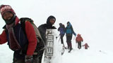 次々と他のパーティが引き返す中を登るが、視界は完全なホワイトアウト。久しぶりにデポ旗が欲しくなる。