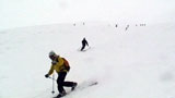 山頂から風を避けた地点で休憩してから、いよいよ滑降開始。