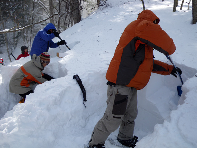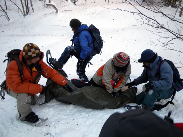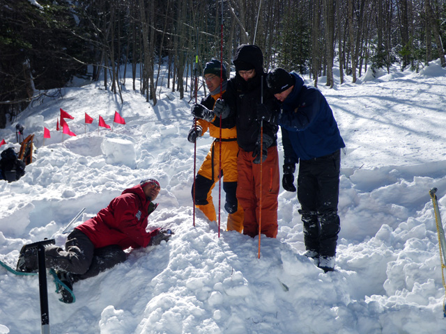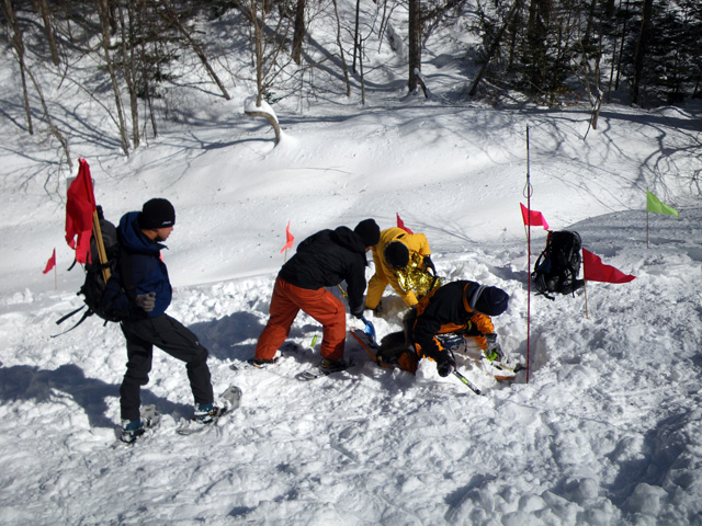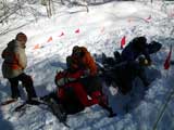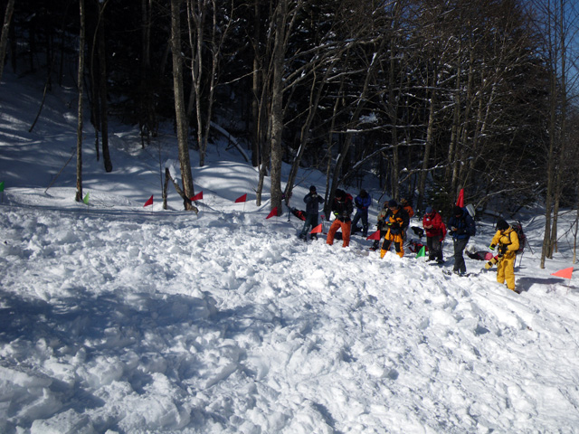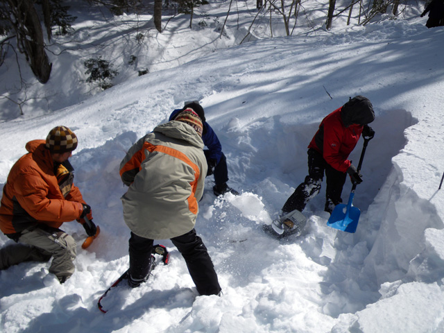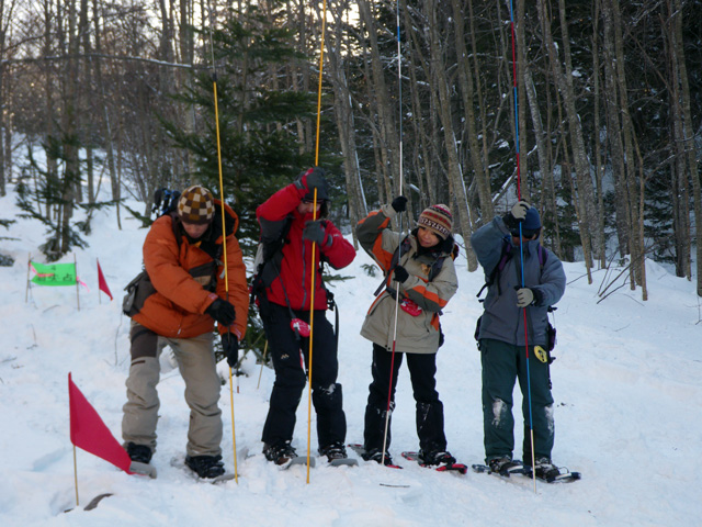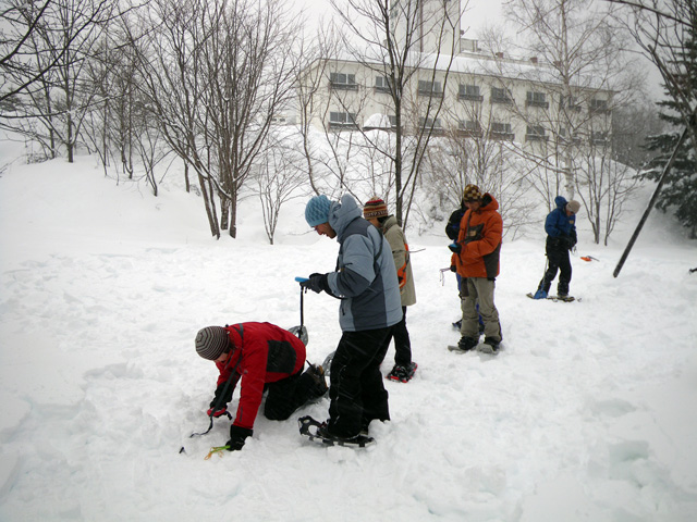 NPO法人ひがし大雪自然ガイドセンター(河田充代表)により、2日間にわたり糠平温泉文化ホールと糠平地区で「初心者のための雪崩事故防止講習会2009」が開催されました。 十勝管内では唯一、雪崩について学ぶ講習会で、4年前から毎年開催されているものです。 今回は、Qaliの山本さんと大西が講師となって二日間の講習をやらせていただきました。 <3 月7日> 08:30〜09:00 受付・装備貸出し・アナウンス 09:00〜10:40 講義 雪崩対策の基本(大西)1’40” 10:45〜11:45 講義 雪崩の発生メカニズム(山本)1’00” 11:45〜12:15 休憩・昼食 12:15〜13:00 講義 雪山の医療(山本)0’45” 13:05〜13:40 講義 ヒューマンエラー(山本)0’35” 13:40〜14:00 講義 ビーコンの基本(大西)00’20” 14:00〜14:30 実技 ゾンデ捜索練習(山本)0’30” 14:30〜16:30 実技 ビーコン捜索練習 2 グループ(A山本 B大西)2’00” 17:00〜18:00 講義 セルフレスキュートレーニングの説明(山本)とグループミーティング1’00” 翌日のアナウンス、終了 <3 月8日> 08:30 会館集合、三国峠へ出発 09:00〜11:00 実技 積雪断面観察と弱層テスト(デモ山本)2 グループ(A山本 B大西)2’00” 11:00〜12:00 実技 V字シャベリング、雪中埋没体験、ゾンデ感触(A山本 B大西)1’00” 12:30〜13:00 休憩・昼食 13:00〜15:30 セルフレスキュートレーニング(山本・大西)⇒2 グループ 1’30” 15:30〜16:00 全体講評・質疑応答・講習終了・現地解散