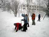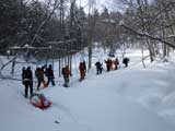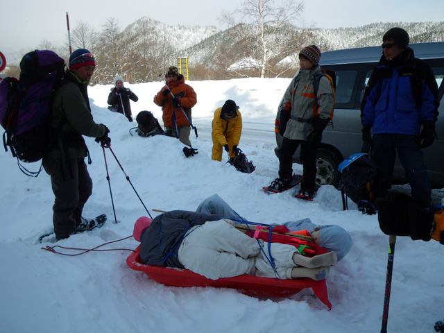 二日目 実技のフィールドへ移動 装備をソリに乗せて運ぶ