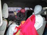 車内の様子 後席にはダミー人形が鎮座 その他機材が満載の状態
