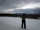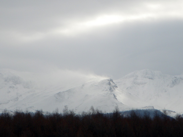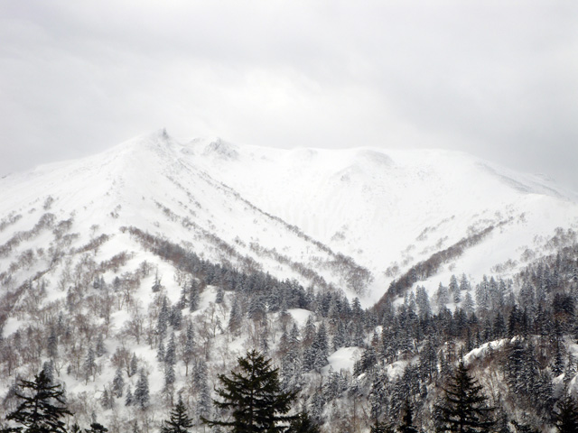 麓から見た山は盛大な雪煙を吹き上げていた。かなりの強風だ。