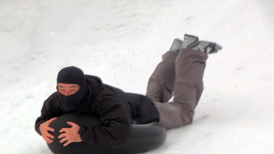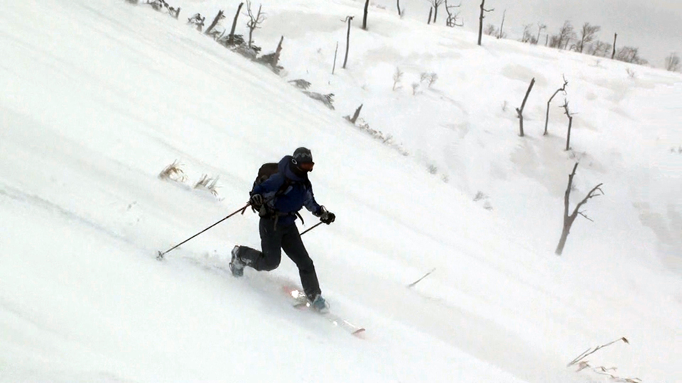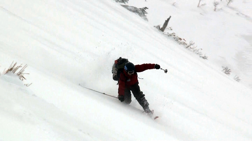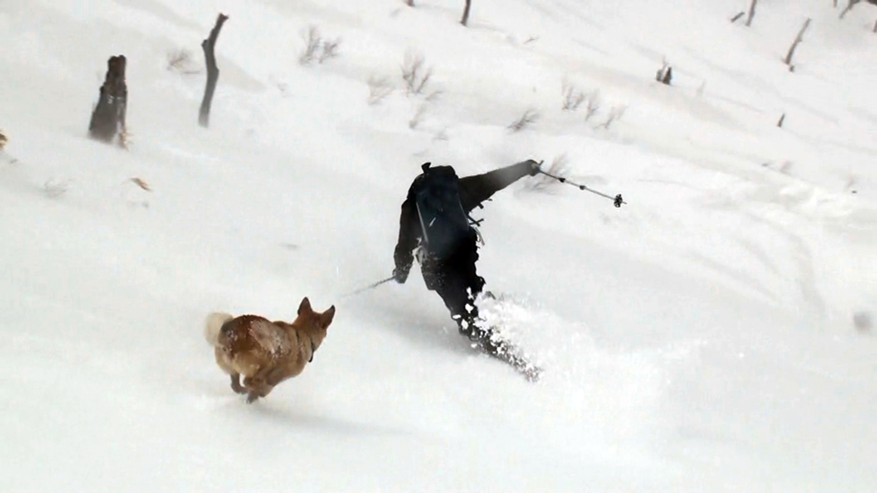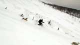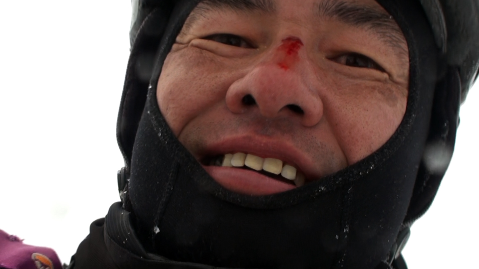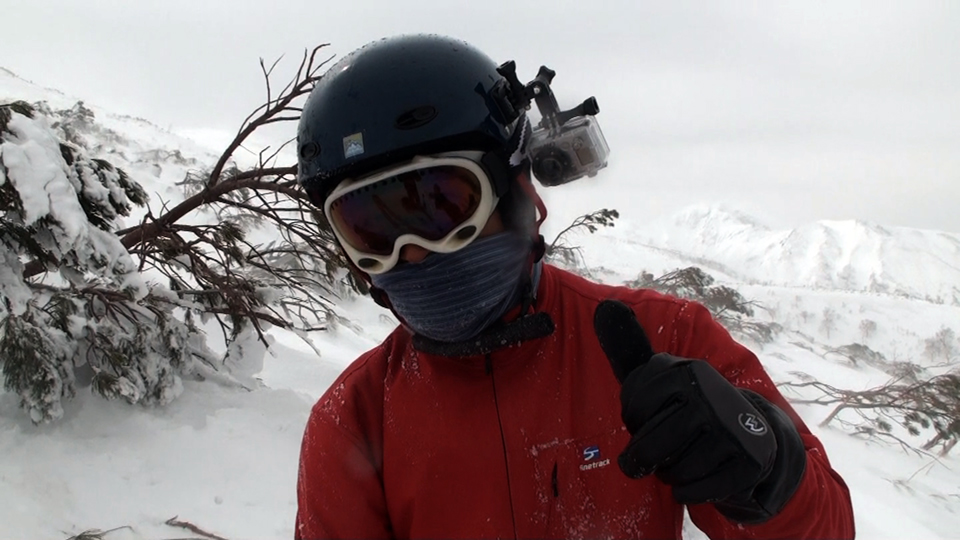 血のりの付いたカメラを構えて、なんとか滑降シーンを撮影した後は速やかに撤収。
