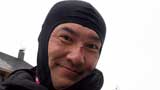 フェイスマスクをしないと飛んできた雪で顔が痛い。日が差しているのに完全装備。気温が高いので体に付いた雪が溶けて濡れる・・