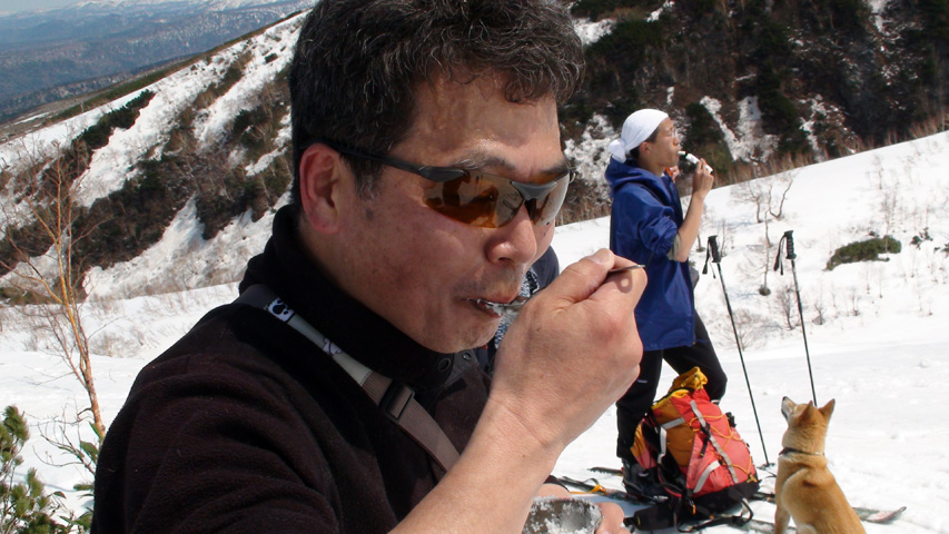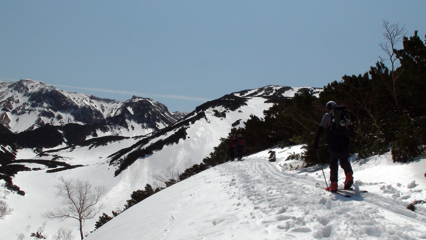 山は一昨日の積雪で白さを取り戻していた。望岳台から偵察したところ、ノーマルルートから東よりに登るとうまく雪を繋いで山頂まで行けそうだった。狙っていたフリコ沢にも雪がたっぷりある。