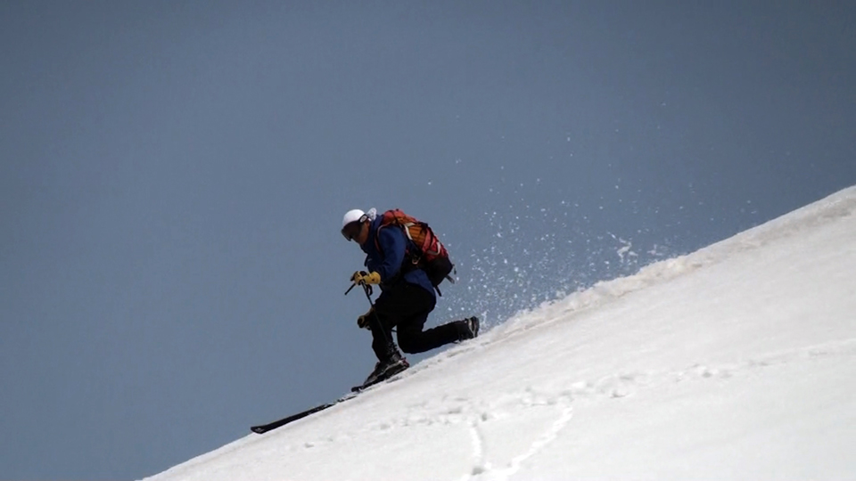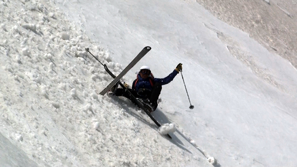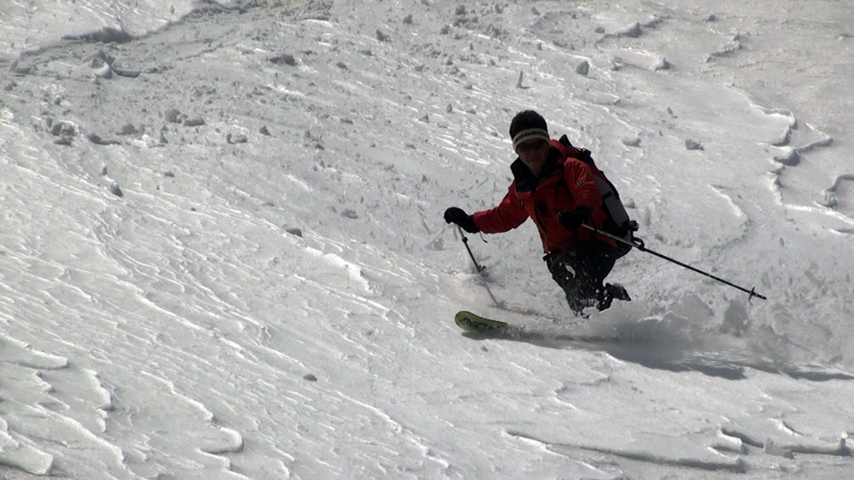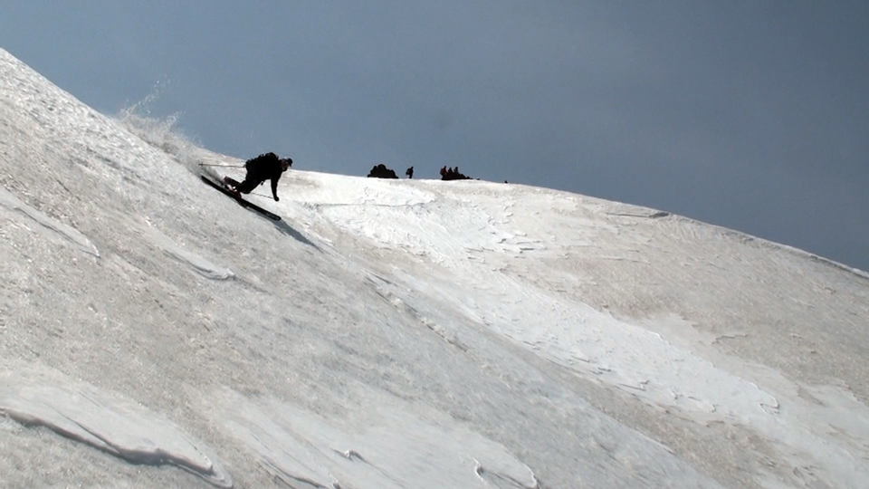 かなり東よりのコース取りで、なんとかスキーを履いたまま山頂へ到達。軽く休憩してすぐにフリコ沢へ滑降。