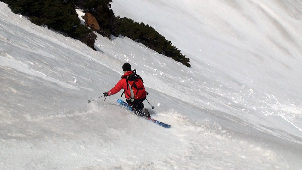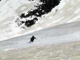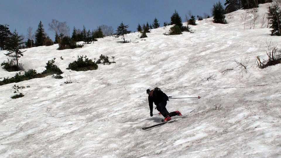 その後トラバースしながら良い斜面を探して滑降し、東谷経由で二段目のノーマルルートへ復帰して帰還。やっぱり斜面の下部ほどブレーキがかかりやすい雪質だった。でも、この時期にしては100点の雪の量と質。