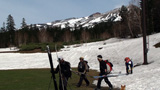朝から素晴らしい快晴、風もない。つまり春スキーとしては最高のコンディションだ。