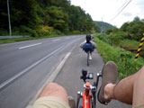 ![]() しばらく走ると、 センターラインの入る快適な舗装に変わる 撮影:kinpei |