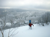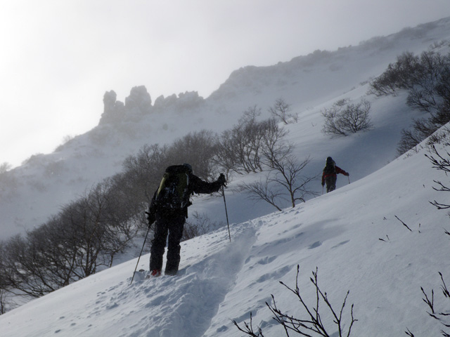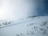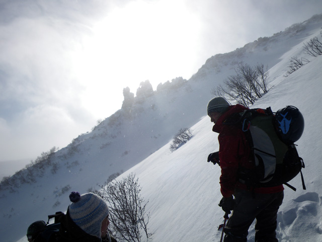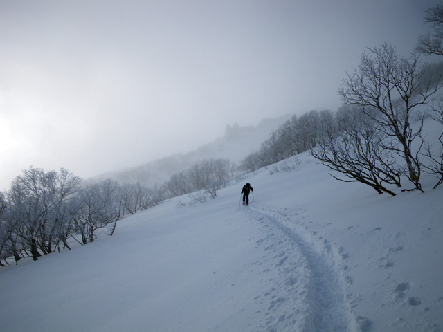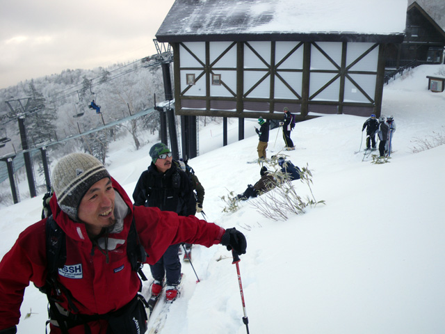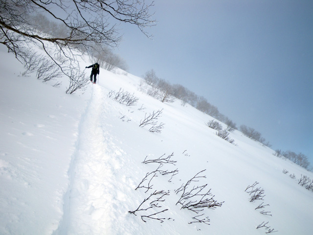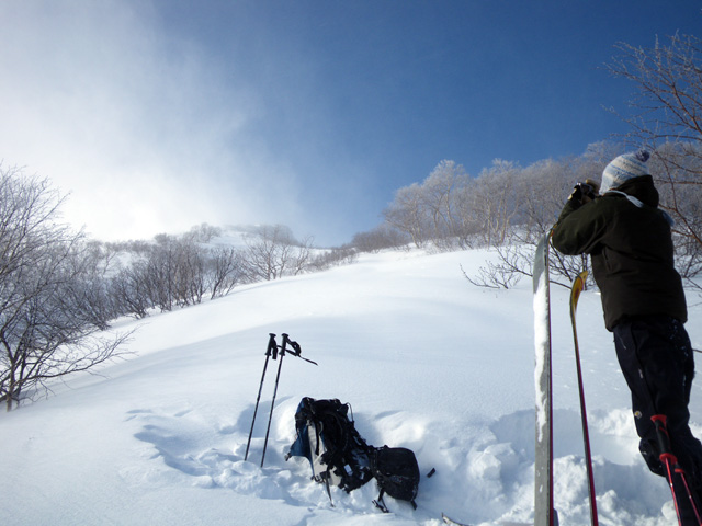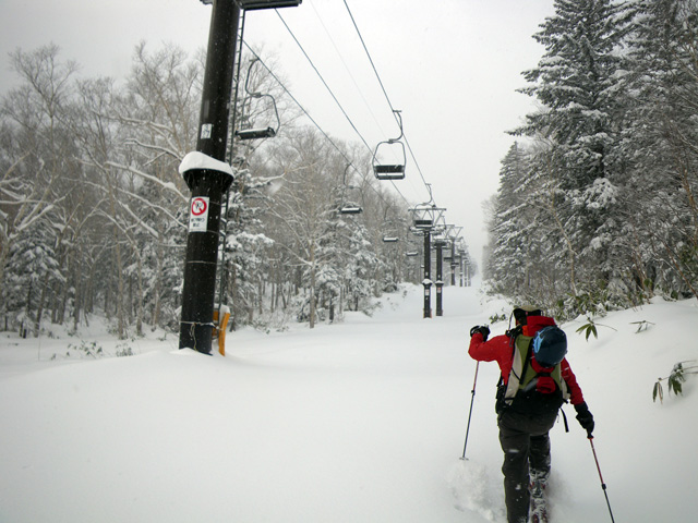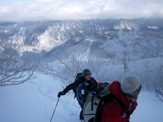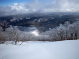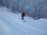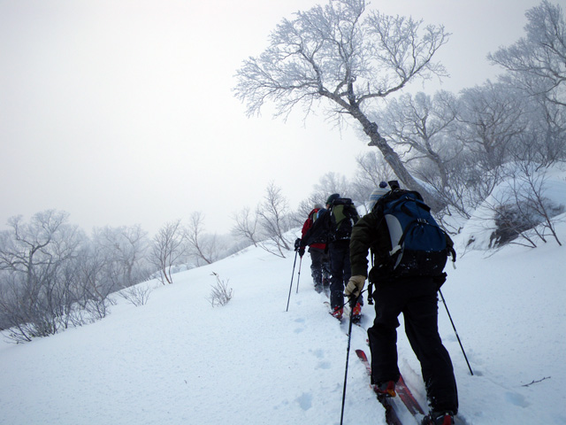 | 2009年11月28日(土) 黒岳スキーツアー(雪質、雪量、言うこと無し) 天候:くもり時々晴れ 気温:-10度 風速:無風〜10m/s 雪量:リフトから山頂まで問題無く滑走可能 ブーツ深さのラッセル 雪質:素晴らしいパウダー コース:ロープウエイ駅(8:25)〜リフト終点(8:50)〜1度滑降してリフトで登り返し〜登山口(9:26)〜9合目(11:00)大西のみ滑降〜ロープウエイ駅(11:40) メンバー:大西、田中パパ、ぱっちまん、タカヤ 計4名 先週の三段山は雪不足で悲惨だったので、今週はとにかく雪のあるところへ行こう。