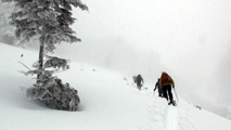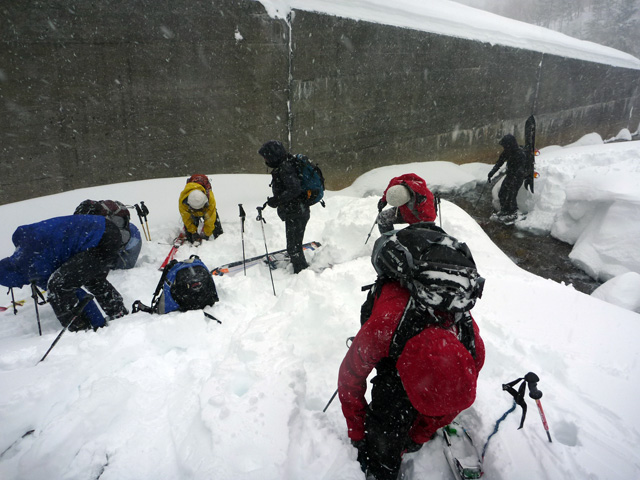 悪天候が続いていたので、雪崩に要注意だ。ベベルイ沢の滑降はやめておいた方が良いだろう。