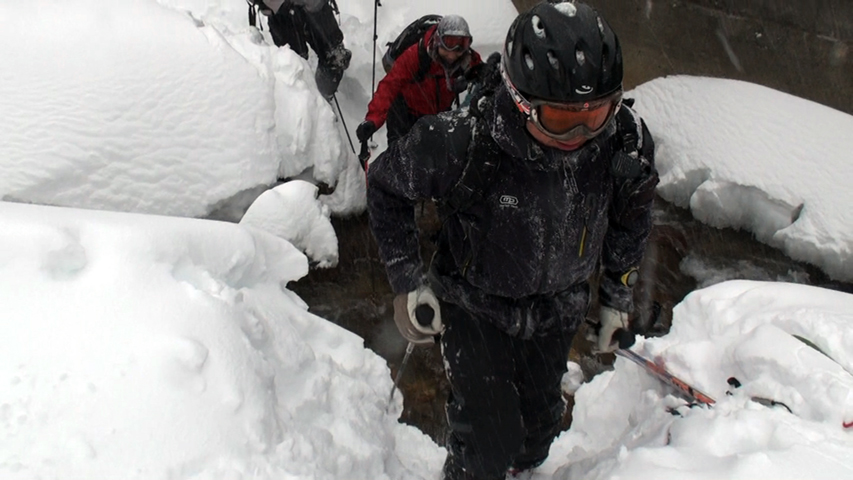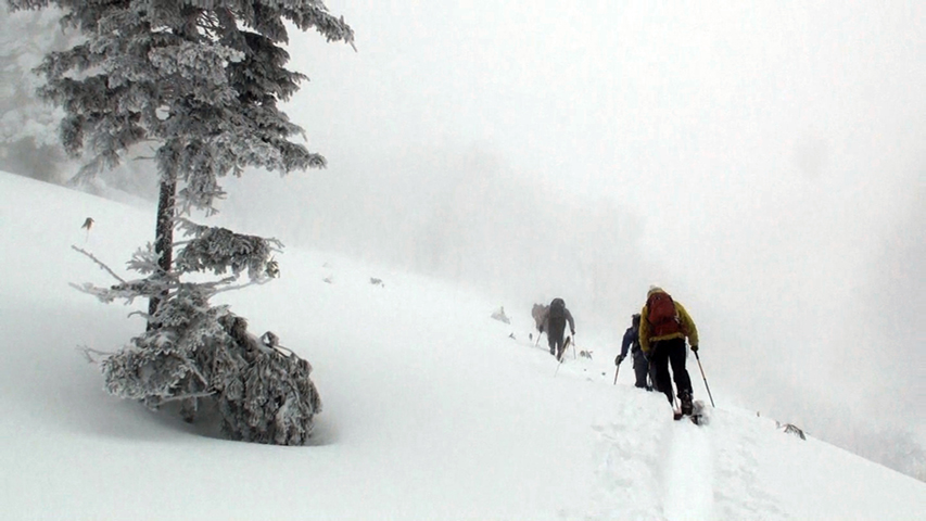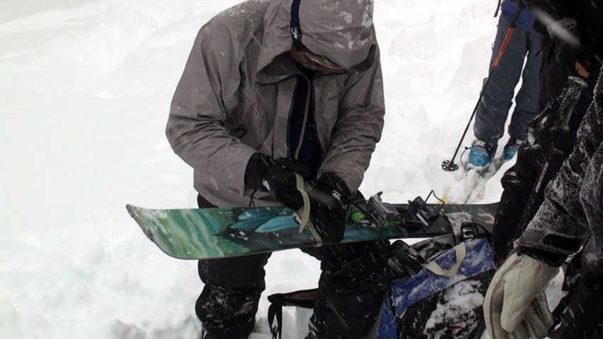 しかし、ここでトラブル発生。大西をはじめ4名のシールが次々と剥がれ、この一連のシールトラブルによって下山時間が遅れてしまったのだ。