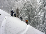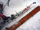 ・シールについた雪は、スキーのエッジでよくしごいてから貼り付けること。