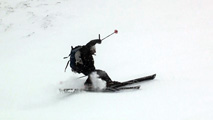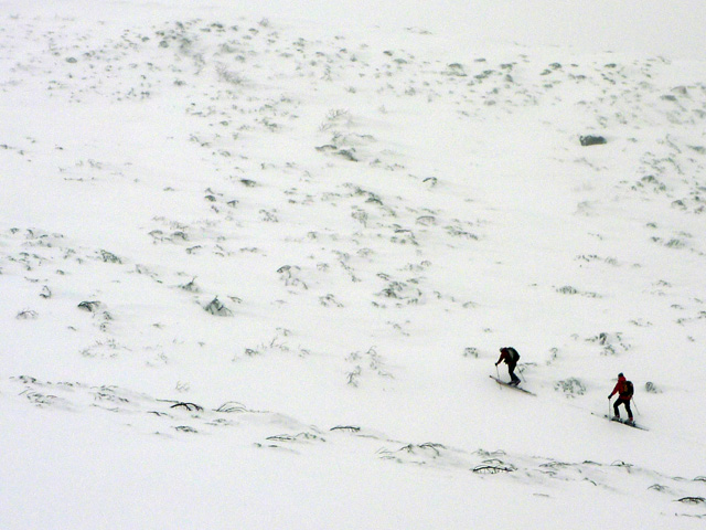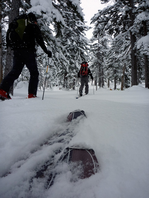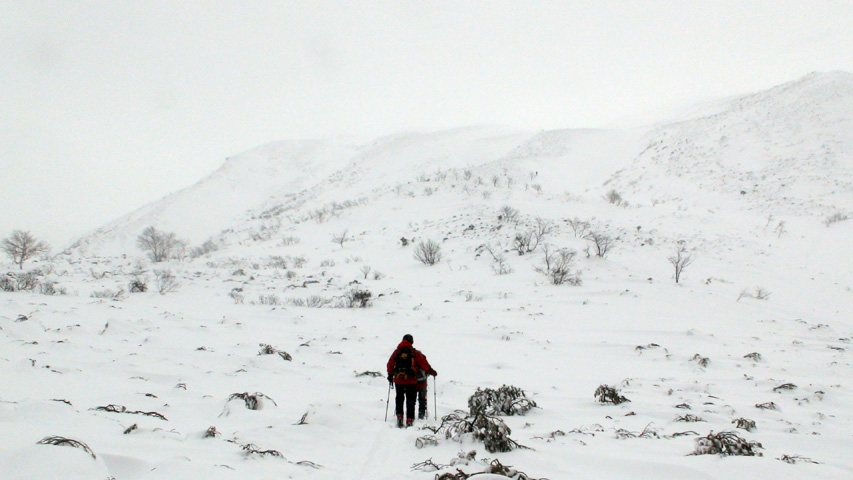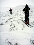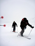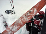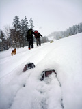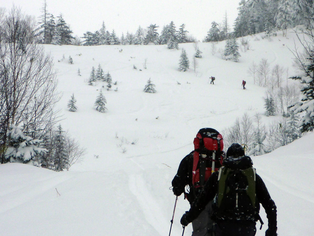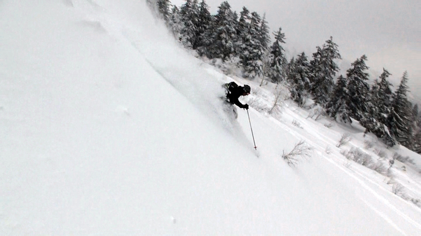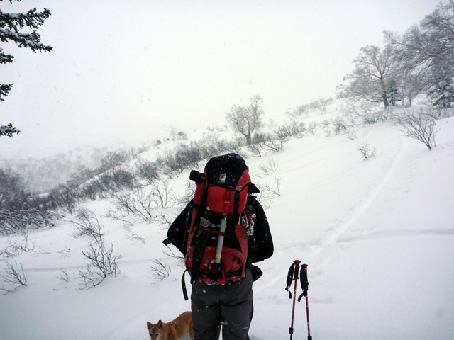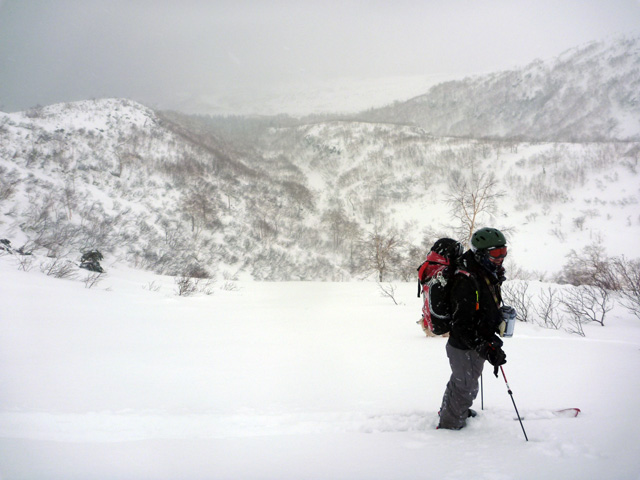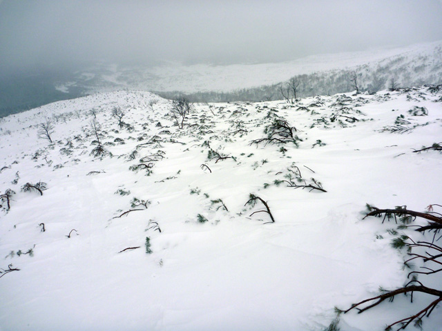 | 2010年1月9日(土) 三段山スキーツアー(シュカブラ地雷) 天候:雪 気温:-10度 風速:0〜7m/s 雪量:十分 雪質:10〜20cmの軽いパウダーの下に堅いシュカブラ コース:白銀荘(9:10)〜三段山山頂1,748m(11:35)〜東の谷〜白銀荘(13:20)田中パパのみ、大西とタカヤは2段目で雪崩セミナーの準備 メンバー:大西、中パパ、タカヤ 計3名+Mix 前回の三段山は、まさしくシュカブラ地獄、今回の三段山は・・シュカブラ地雷だ! 風向き等考えて、唯一の望みを託した東谷も微妙・・今度は田中パパが掃海艇というよりも、特攻隊となって地雷原へ飛び込む(とても真似できない)。 でも、やり遂げた感があって実に充実感のあるツアーでもあった。 同じく三段山にガイドツアーで入っていたぱっちまんも手こずっていたようだが、魔法のように良い雪の斜面を見つけていたみたいだ。さすがだ! 帰り際は、大粒の雪がぼわぼわ降っていた。シュカブラが完全に埋まれば、明日からはパウダー天国だろう・・・そうなってほしい。