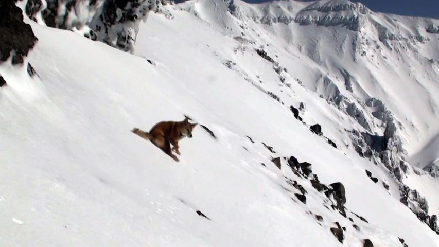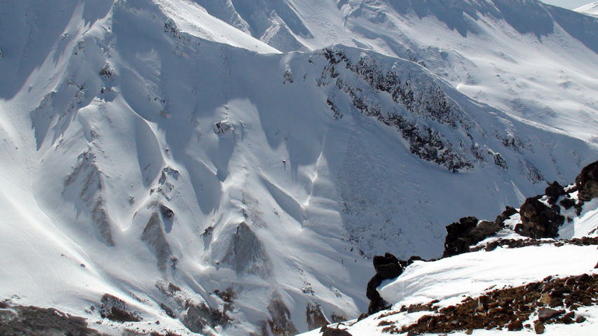 化物岩 雪崩現場を見下ろす