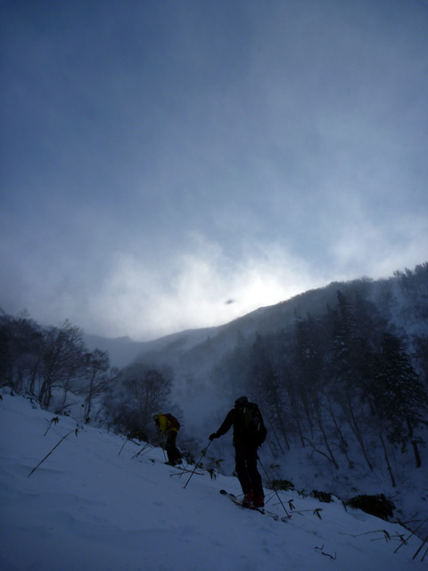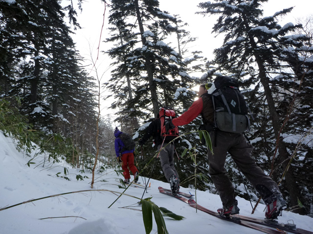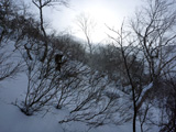 藪の間を下山するのは辛かった。積雪の少なさと強風のダブルパンチという非情な大晦日ツアーとなった。
