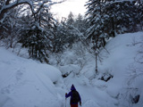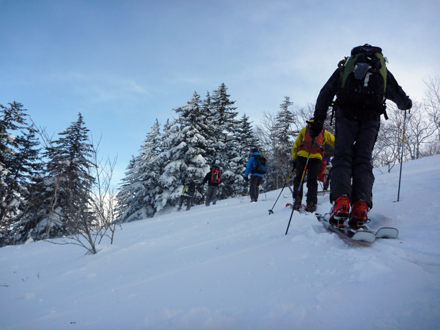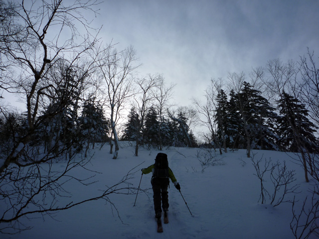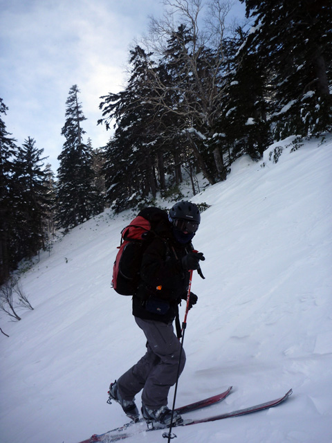 先週から積雪はまったく増えていなくて、樹林帯もクラスト気味の雪になっていた。ラッセルが無いことだけが救いだ。
