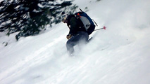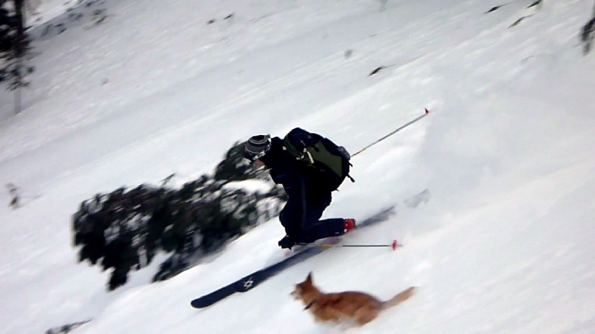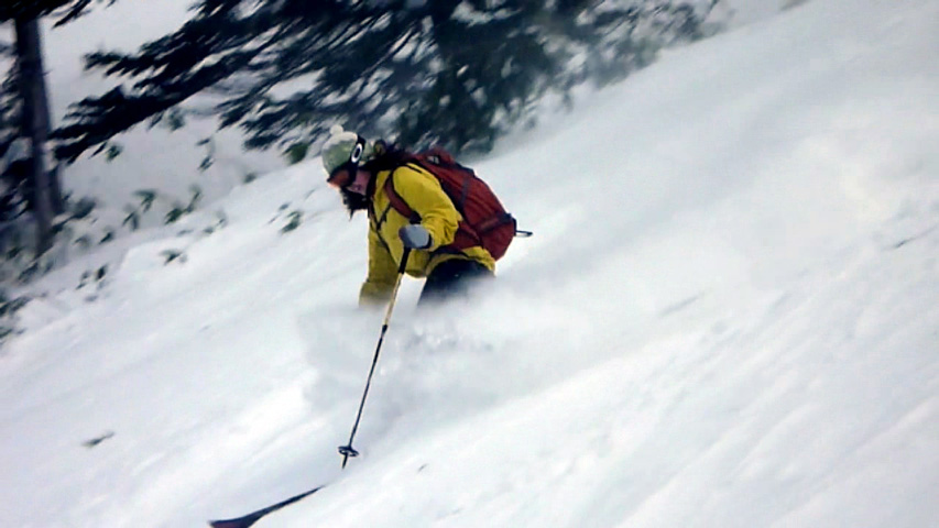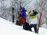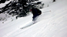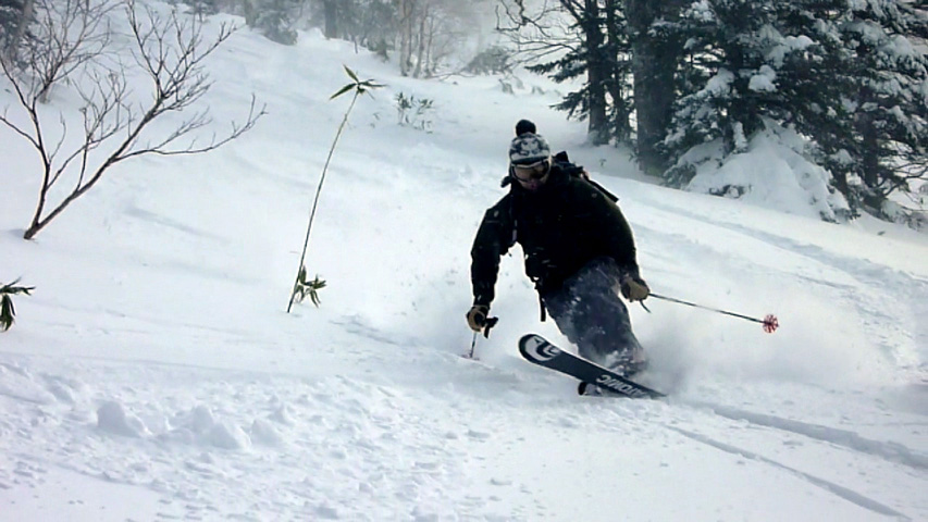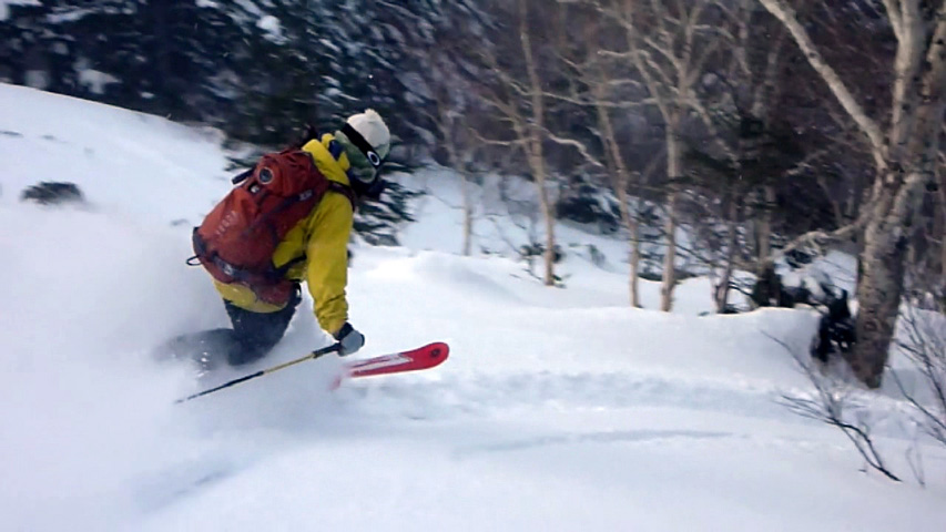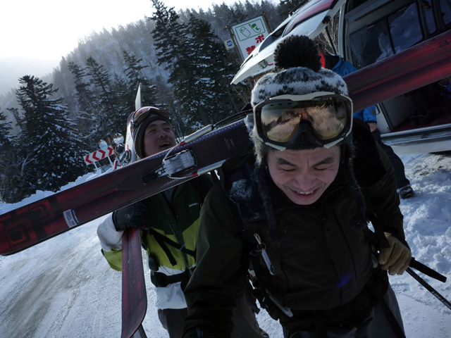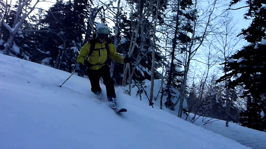 雪はパック気味だけどなんとか滑降を楽しめて、一瞬天国を味わった。今日は登れただけでも大幸運。さぁ、ここから欲張らないでさっさと下山(滑降ではない)。