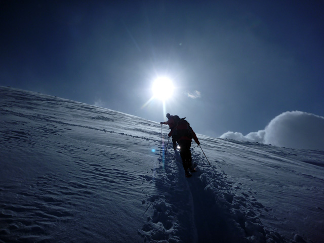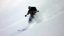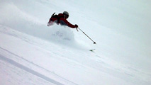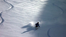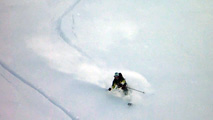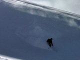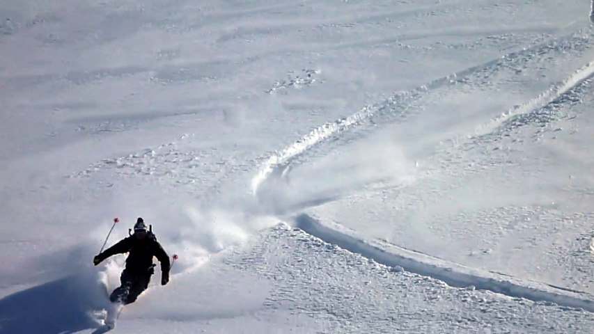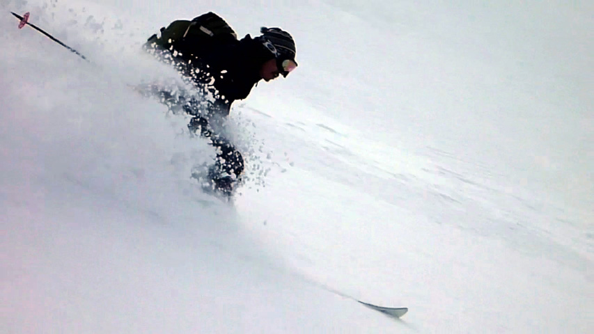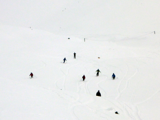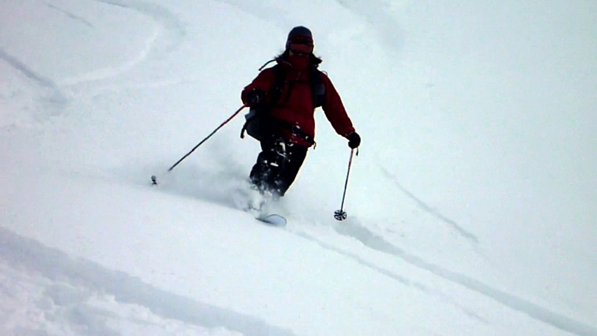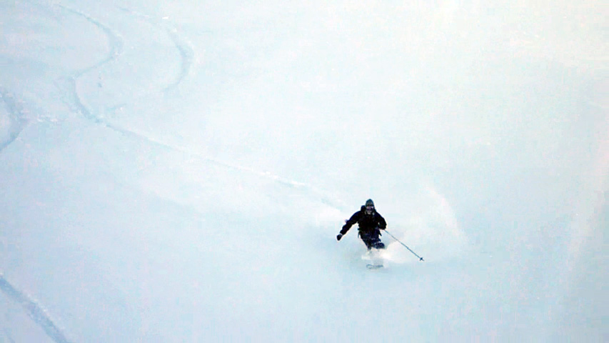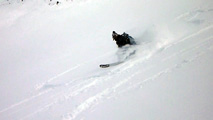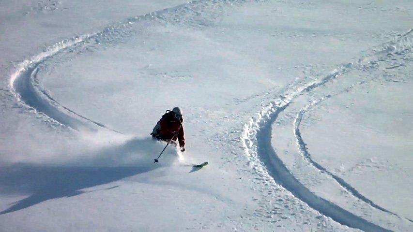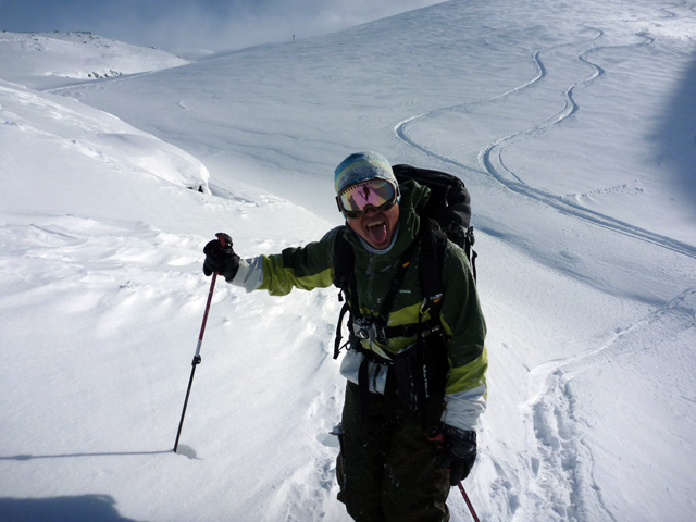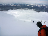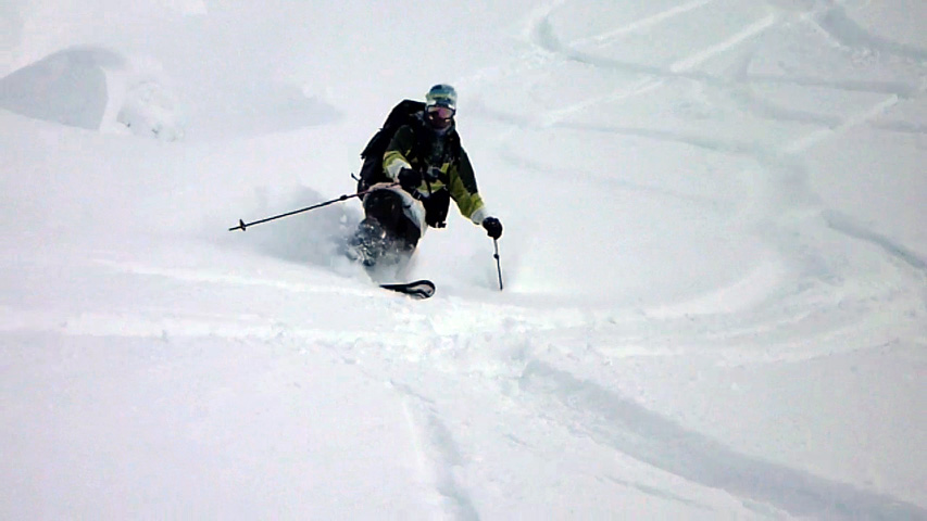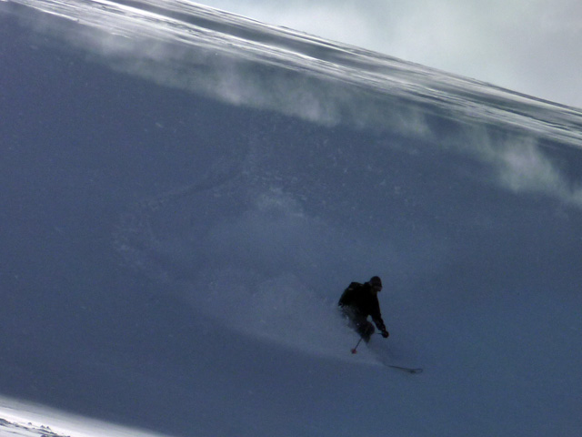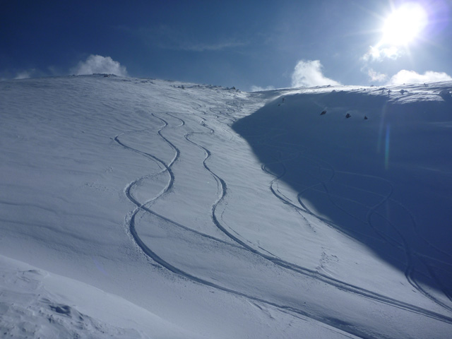 気を良くして登り返してボウル斜面へ入ってみたら、こちらも素晴らしいパウダー。前回のツアーは何だったんだろう・・