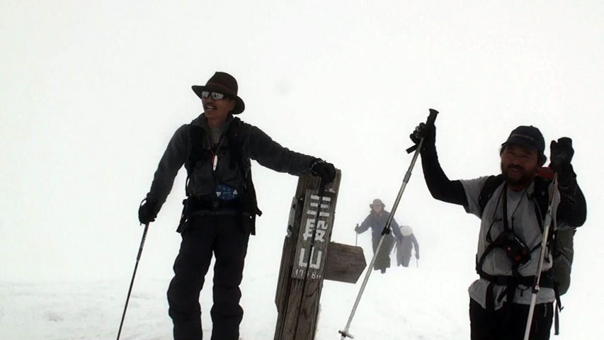 普段よりもゆっくりなペースで到着した山頂は、ガスに包まれていたが多くの登山者で賑わっていた。