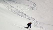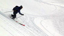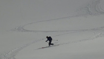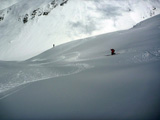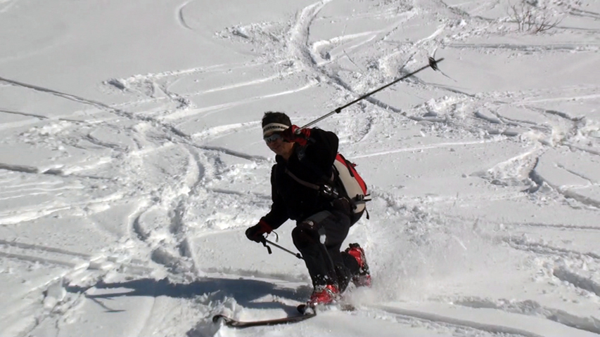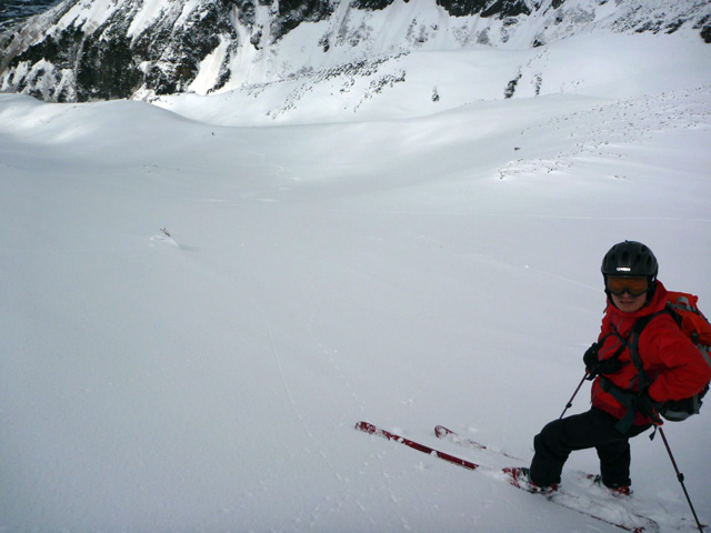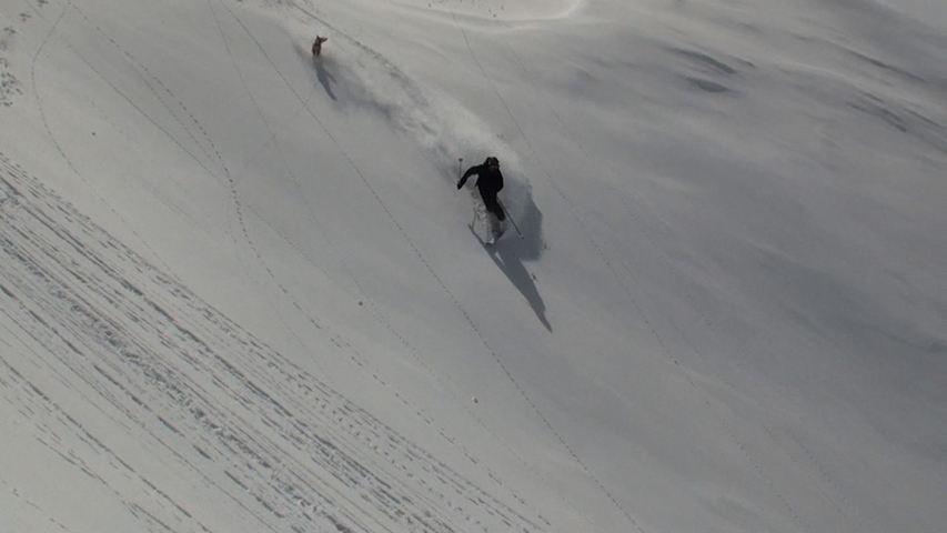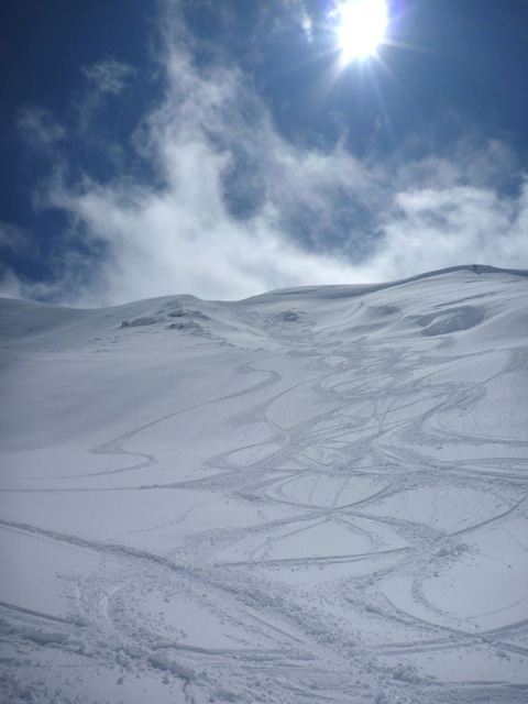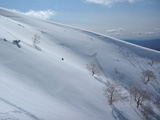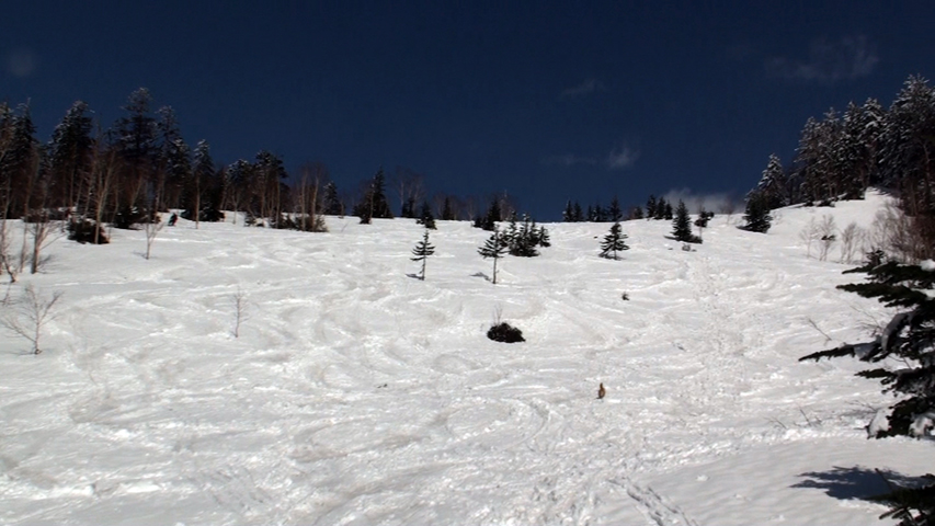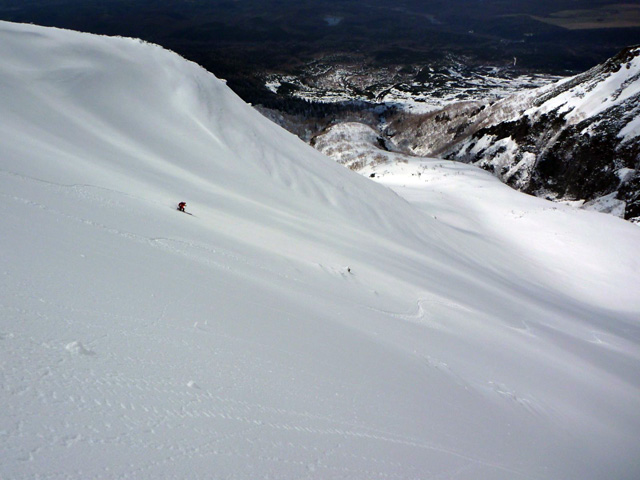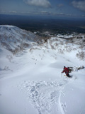 前日に三段山を滑ったスーさんによると、全山ガリガリの雪質で滑落の恐怖を感じたほどだったとのこと。