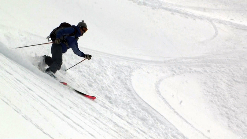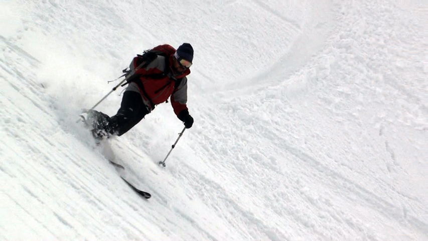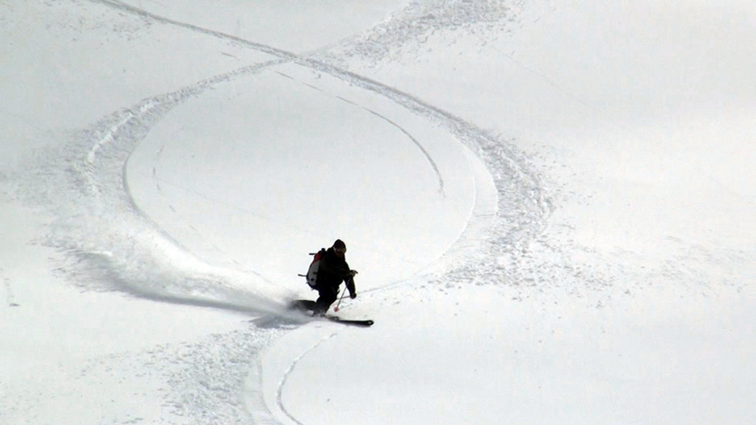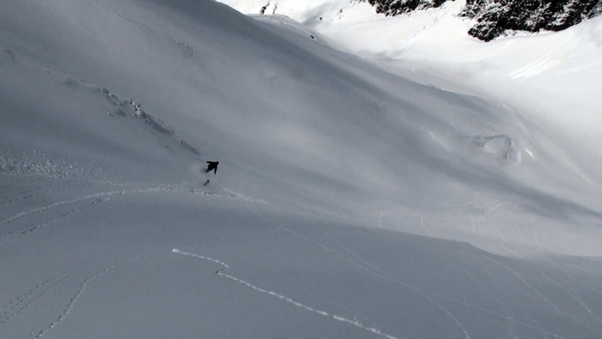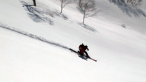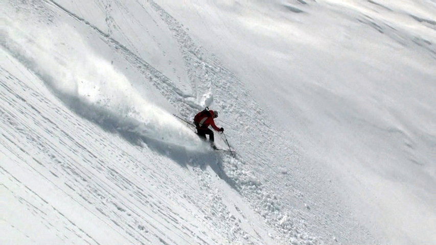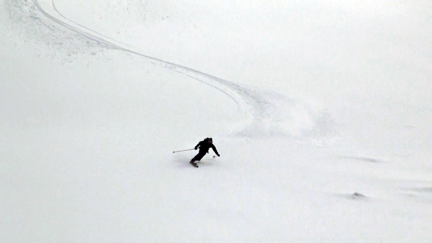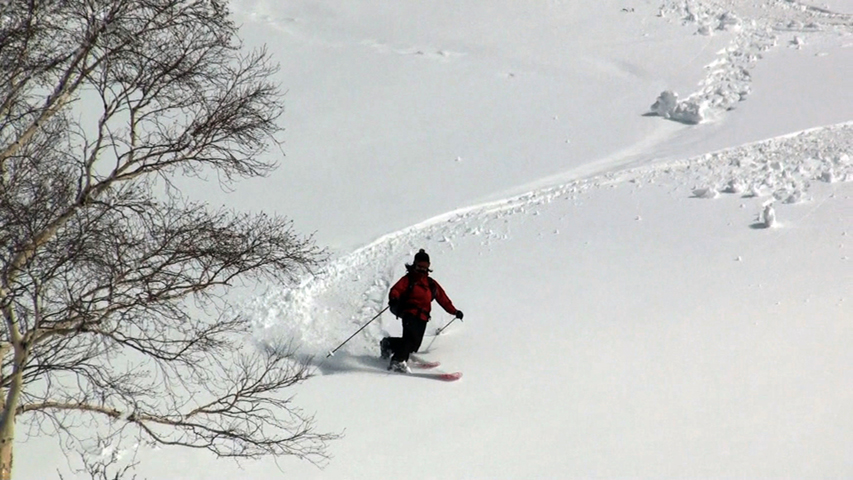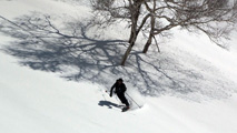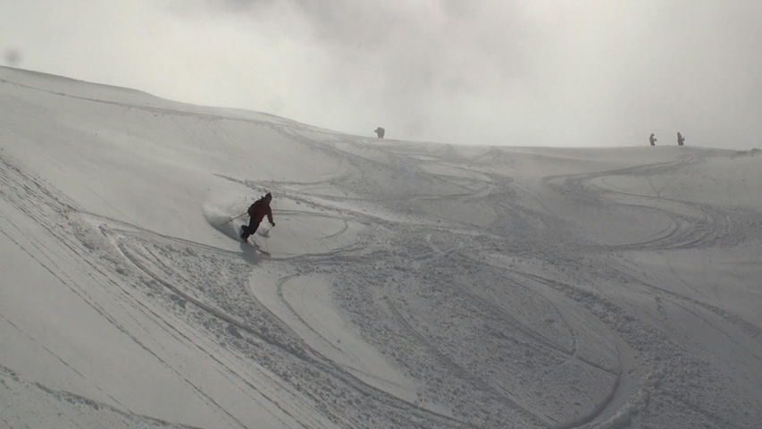1.夜に降った雪がガリガリを覆い、新雪を滑ることができる。