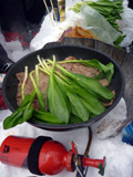 長らく三段山で遊んできたが、山頂での焼肉は初めてだ。カミフ豚サガリにT田さんが持ってきてくれた行者ニンニクをが投入される。美味い。