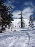 二段目付近でパークボランティア三段山スキー隊とすれ違い、立原先生と挨拶を交わした。