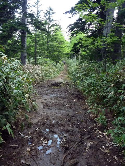 滑ってみると、表面が柔らかく汚れも少なくて滑りやすかった。ただし、雪面は凹凸が激しいので板が蹴られることがあった。