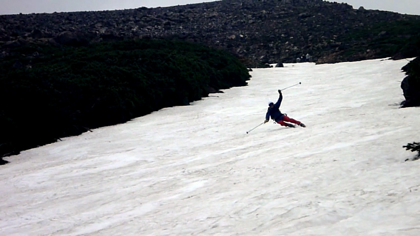 名残を惜しんで、もう一度登り返して今シーズン最後の滑降終了。