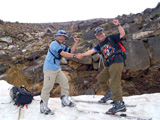 荷を軽くして残雪のトップ(1,600m付近)まで上がり、ノンアルコールビールで残雪スキーに乾杯。