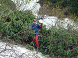 残雪は多くて、恒例の藪漕ぎもごく短い二カ所だけ。驚いたことに通称「焼肉岩」が雪に埋まり見えないほどだった。