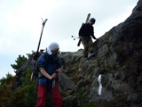 別パーティ(1名はショート・テレマークスキーヤー)が追いつき、さらに上部へ上がっていった。凄いバイタリティー。
