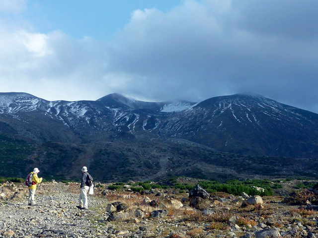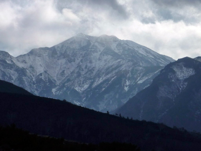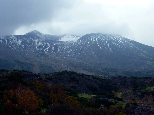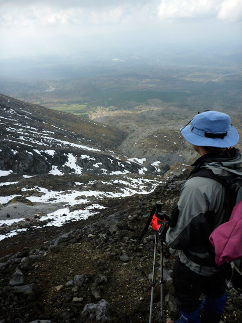 望岳台から見た山には雪などほとんど無く、ほぼ真っ黒。