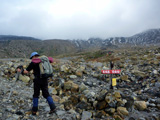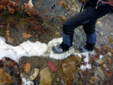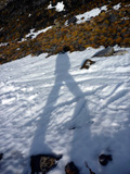 積雪深5-10cm。幅1-2m。長さ5m。岩だらけなので、うっかり転倒すると骨折しそうだ。これぞfoolish!さっそく滑走開始。
