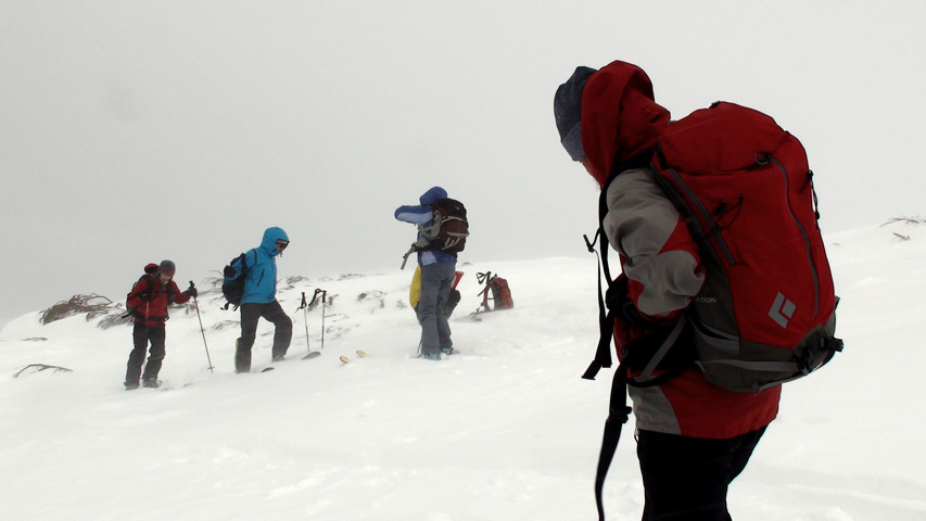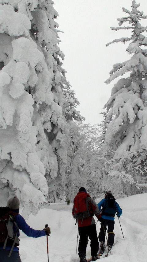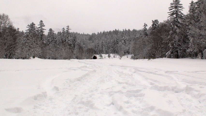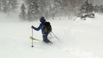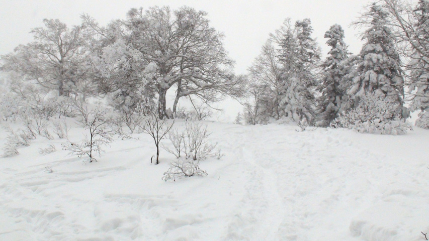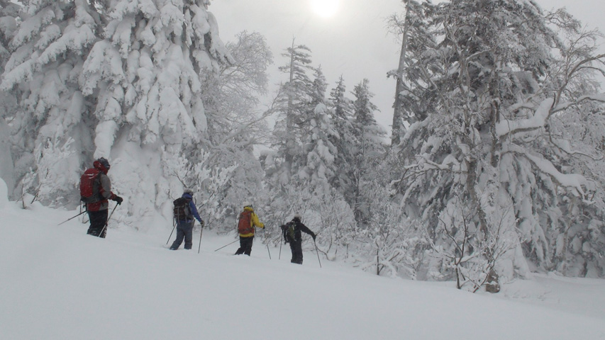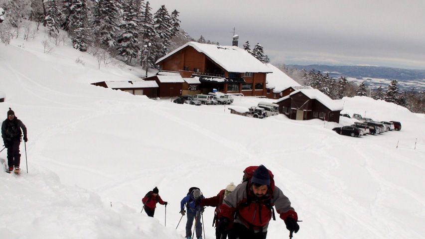 2011年12月29日(日) 前回のツアーでは完全に積雪量が不足していたが、記録的な大雪があったおかげで今回のツアーでは十分な積雪量になっていた。 翌日の富良野岳はパウダー大当たりだったとのこと。羨ましい。