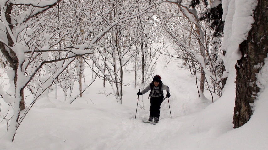しかし、樹林帯の雪質は良好だった。無理して標高を上げなければ良かったと反省。