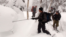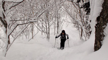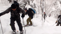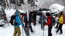 さて、富良野岳には確かに雪はたっぷりあったが、問題は雪質。シャベルコンプレッションテストでは安定していたが、深く重く癖があり、登りではラッセルが辛く、滑降時には転倒者が続出した。