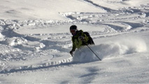 上部は底付きがあったりハイ松地雷が隠れていたりしたが、雪は徐々に深さを増してコンディションが良くなっていった。