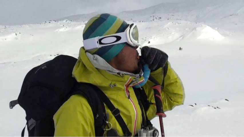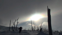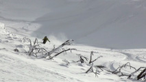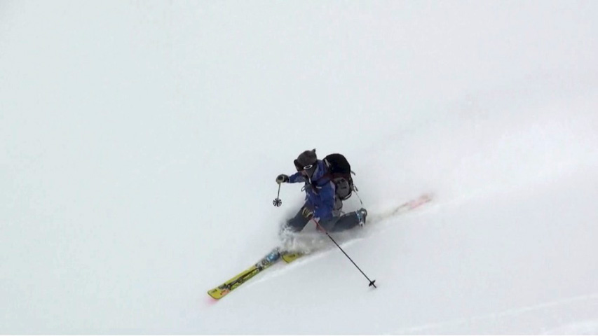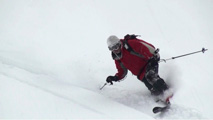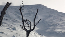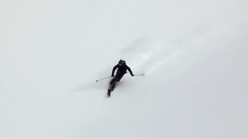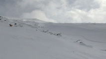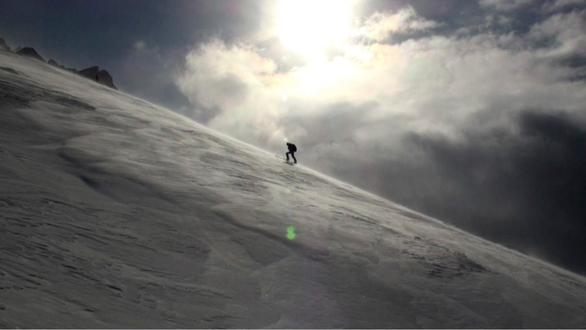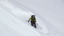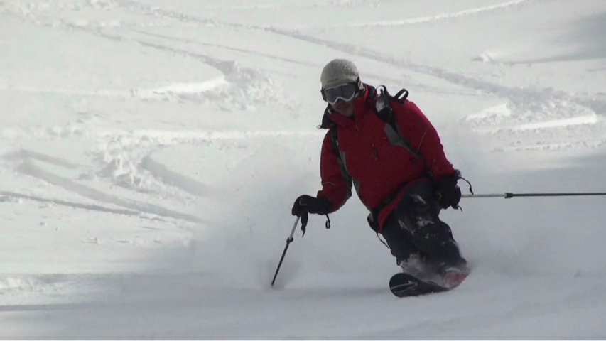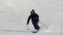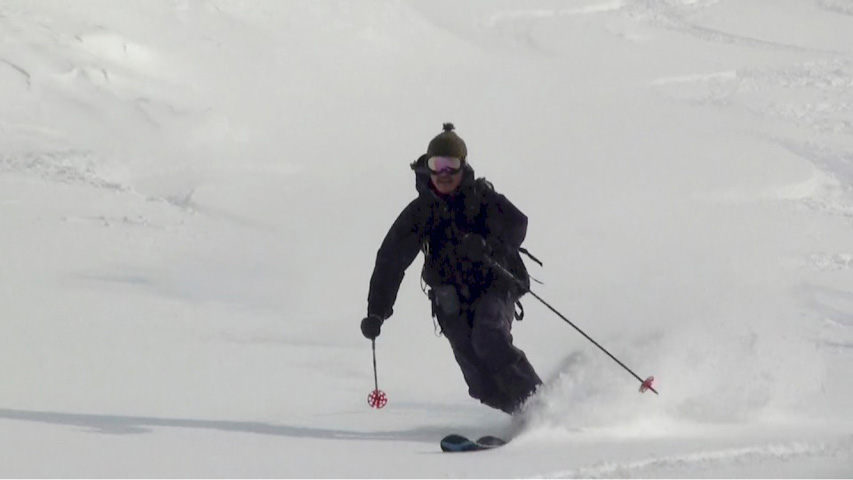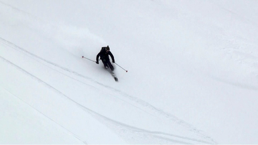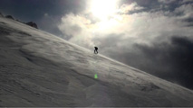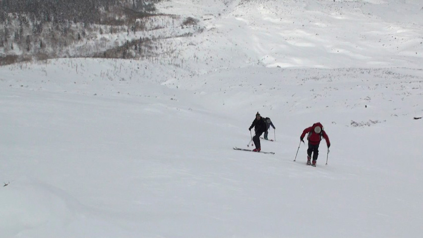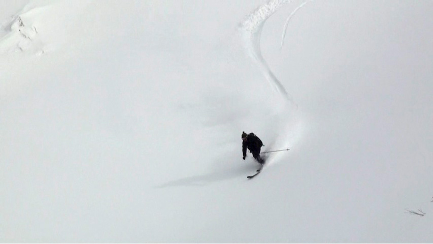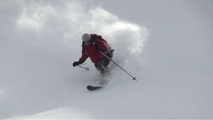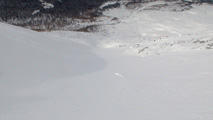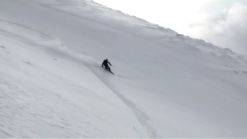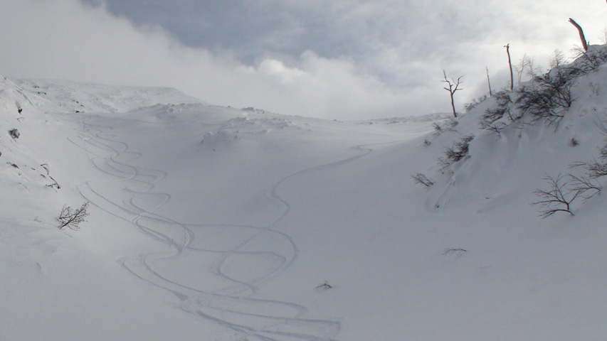 これに気を良くし、登り返してこれもノートラックのボブスレーシュートを大滑降。こちらも良い雪だったが、太陽が隠れたので先発のスキーヤーは斜面の状態を把握できず苦労したみたいだ。
