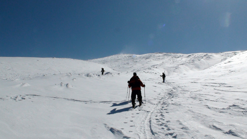 三段山スキーツアー(晴天の果てに・・皮靴ツアー)