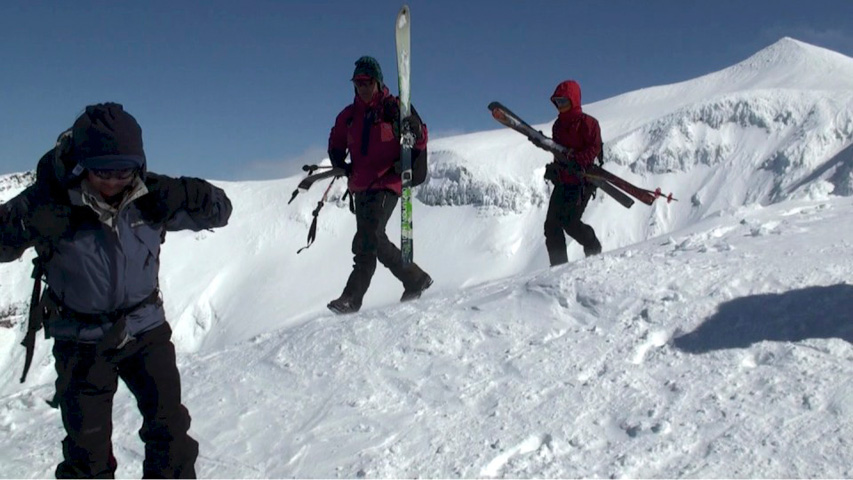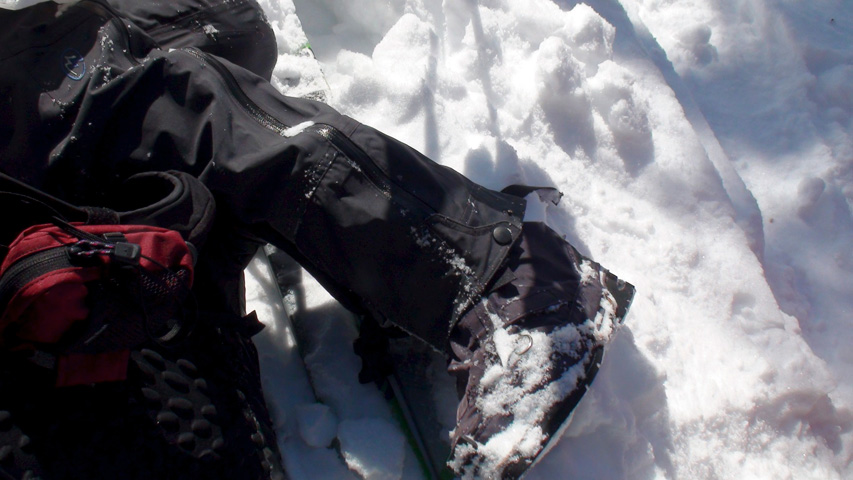 山野井さんはステップソールで登っていたが、途中からシールを装着。ちなみに、山野井さんも北村さんも皮靴+ゲイター。