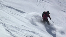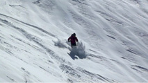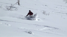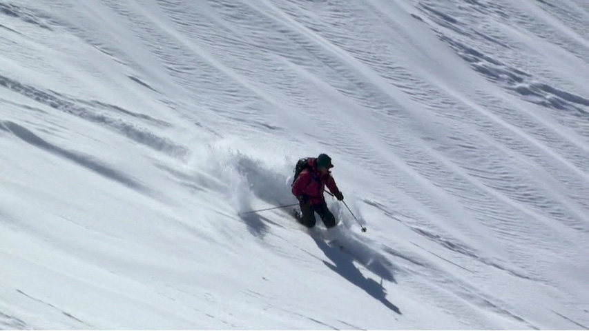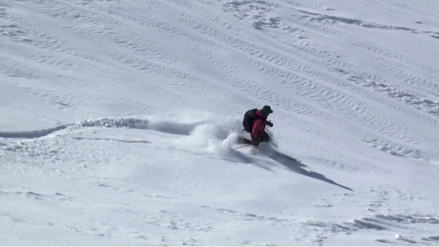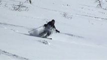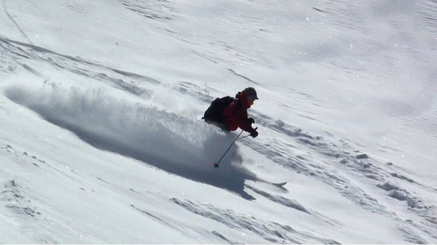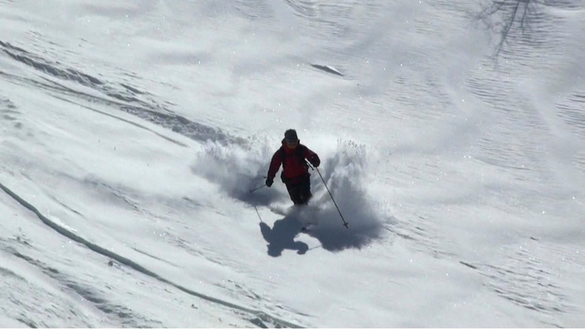 時々、隠れているシュカブラや古いシュプールに突き上げられたが、概ね快適に滑ることができた。