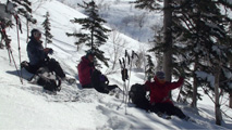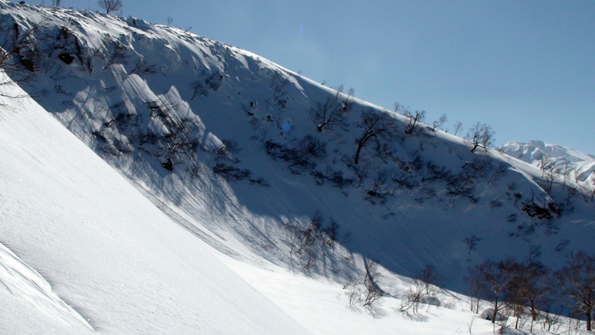 この三日間は晴天が続いていたということで、どの山もシュプールだらけになっていて、川上さんが、「天気が良すぎるよ。降って欲しかったなー」とぼやいていた。
