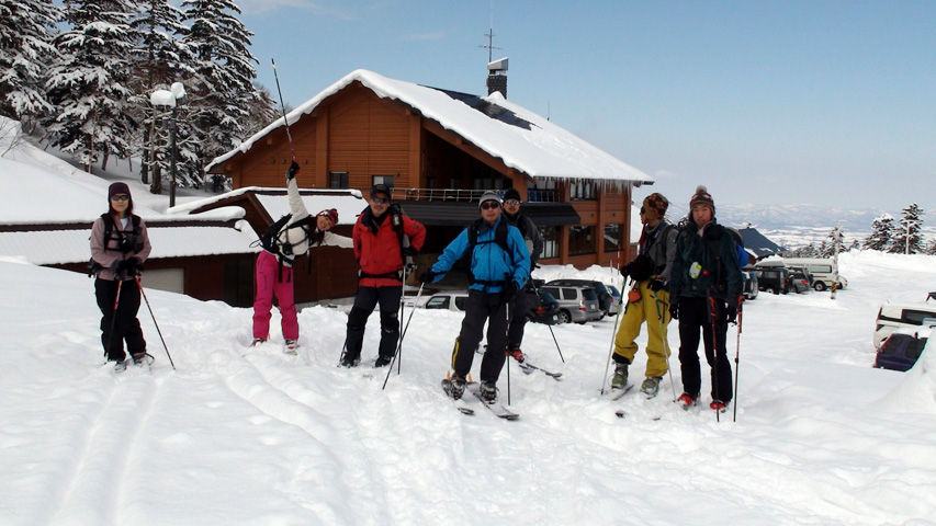 残念ながらkinpeiさんのチリコブラのヒールピースが破損し、せっかく登り返した斜面を片足スキーで降りてくるというアクシデントがあったが、応急修理で白銀荘まで凌ぐことができた。