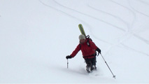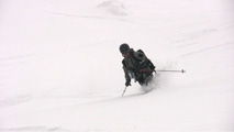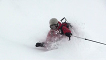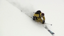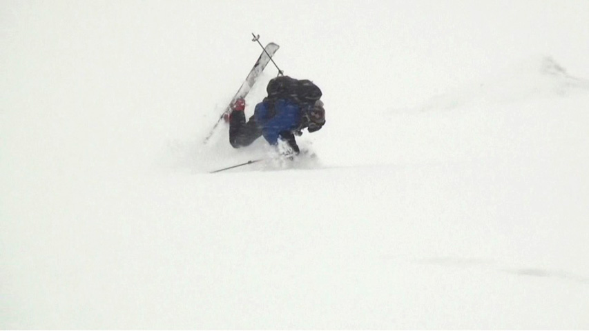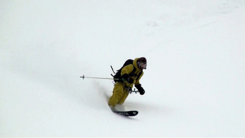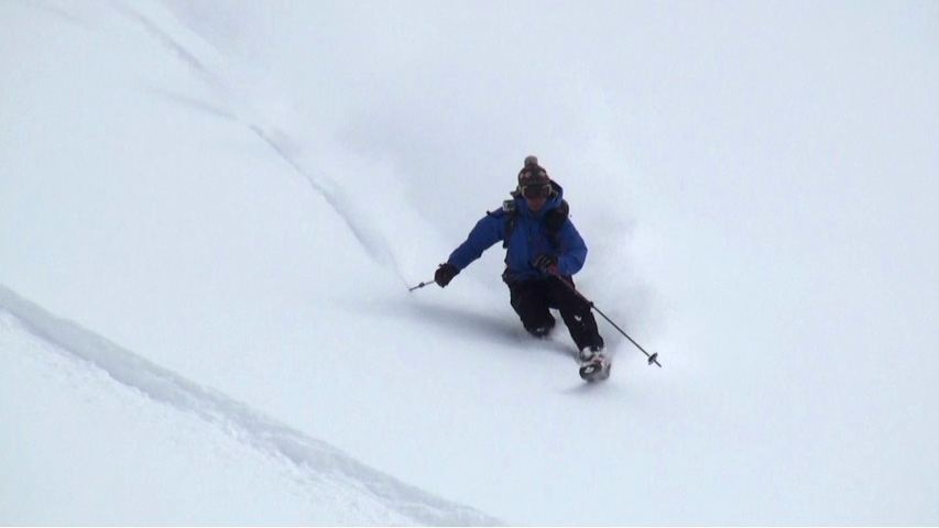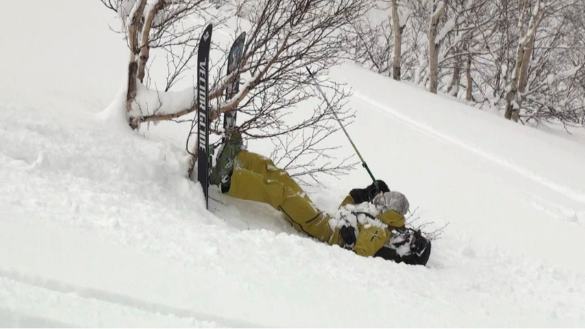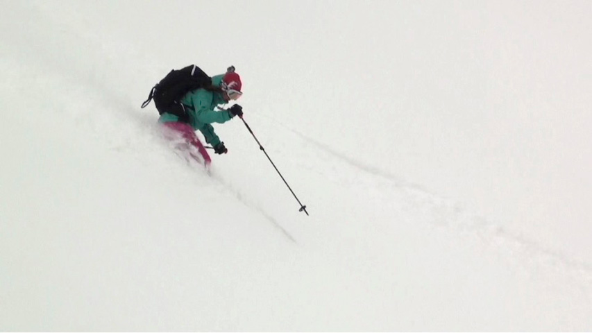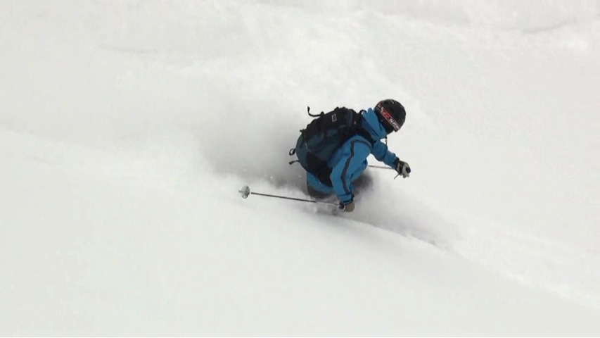 幸いだったのは、核心部にすでに何本かシュプールがあり、ハンドテストでも積雪が安定していたこと。